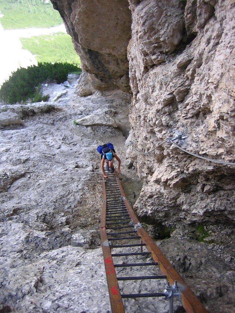 Obwohl man auf dieser Tour fast nur klassische Wanderer ohne Klettersteigausrüstung trifft, sollte besonders der Nordteil des Sent. Bonacossa wegen des losen Gerölls nicht unterschätzt werden.