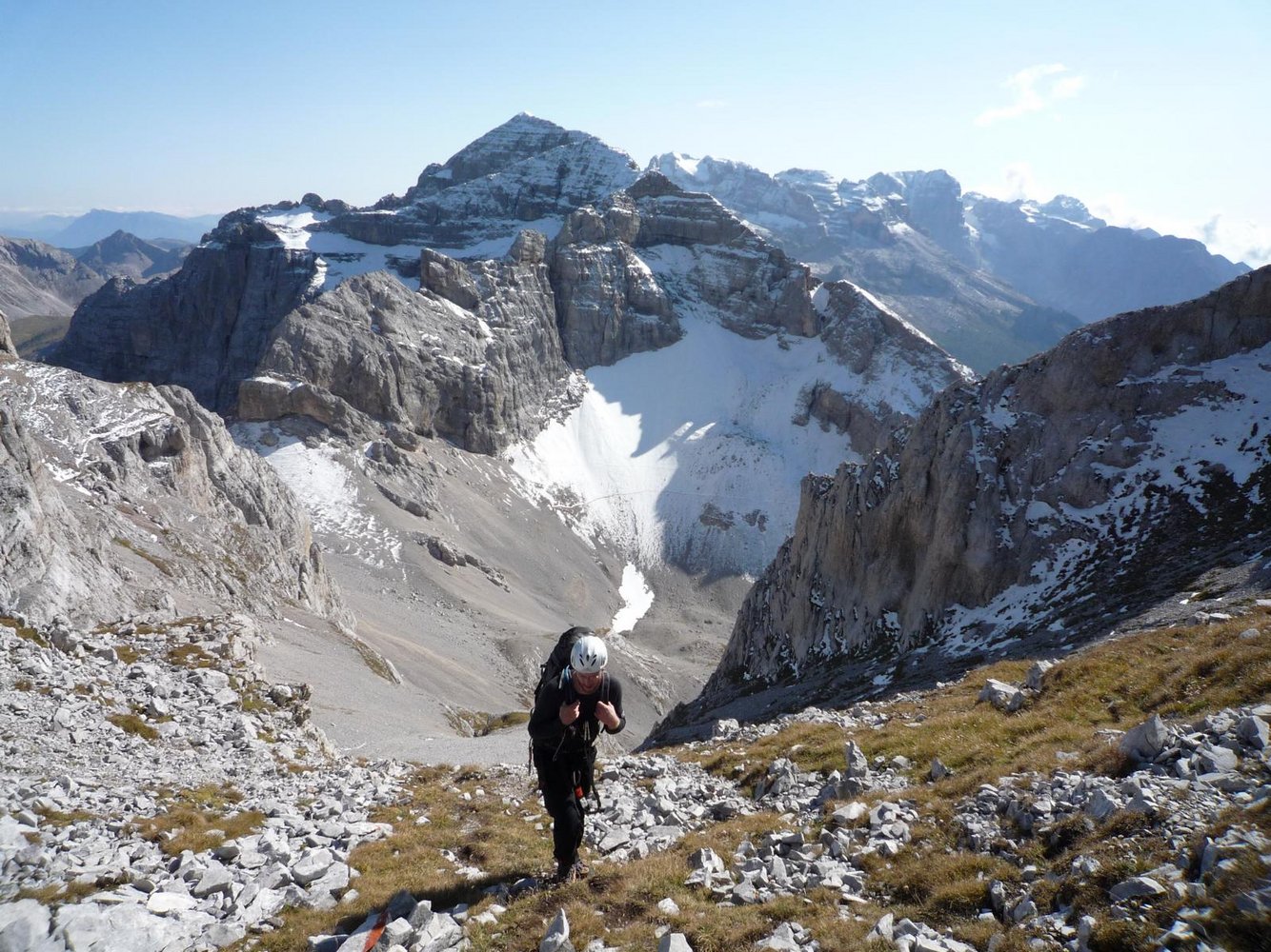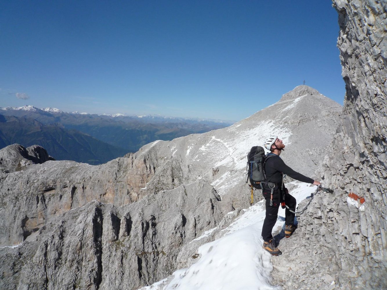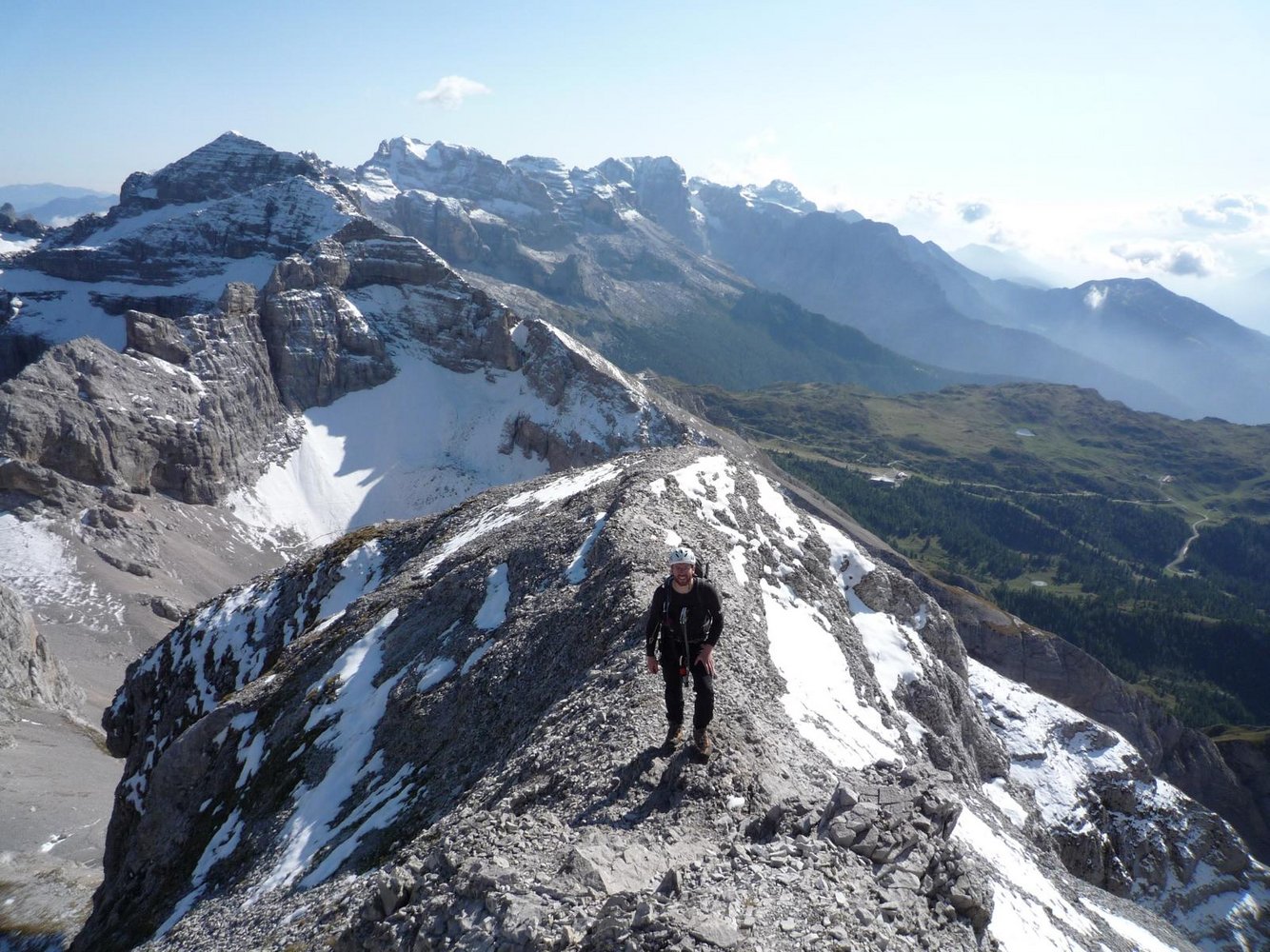 Großartige, ernste und extrem lange Brenta-Querung zwischen Rif. Graffer und Rif. Peller, die stets einem Grat durch eine für die Brenta untypische Gebirgslandschaft folgt und den Massen des Bocchette-Weges ausweicht. Die Klettersteigpassagen befi nden sich zwischen Passo di Val Gelada und Passo di Pra Castron und erfordern, trotz der nur mäßigen technischen Schwierigkeiten, ein hohes Maß an alpiner Erfahrung und 100%ige Trittsicherheit.