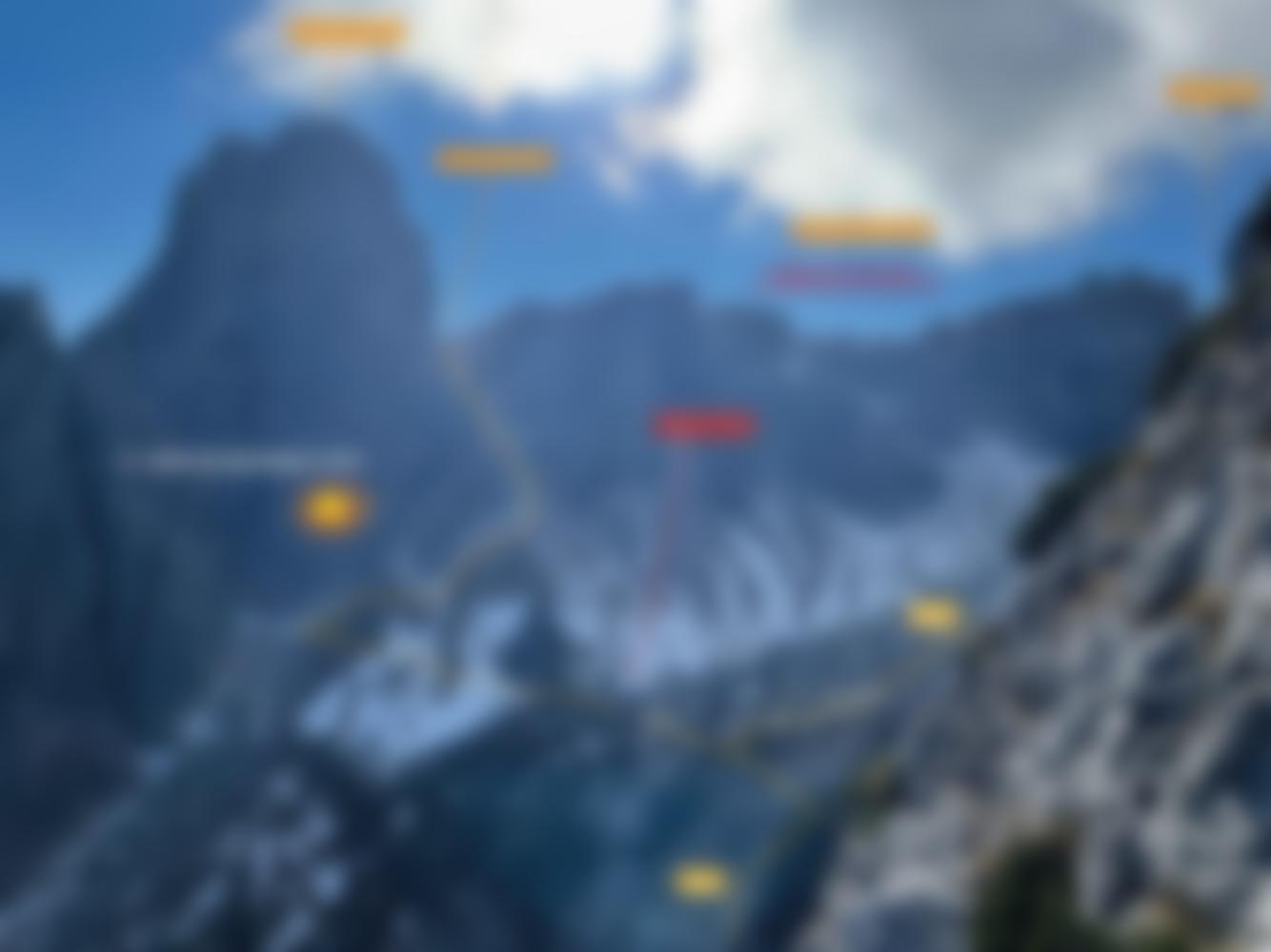 b.) (der schönere Abstieg, da landschaftlich einmalig, mit Wassertümpeln und kurzen Seilversicherungen) Nach dem Klettersteig erreicht man die Korscharte (Forcella del Valone, 2180 m). Von dieser in westlicher Richtung über den markierten Weg 625 zum Rifugio Corsi (1874 m, derzeit auf unbestimmte Zeit geschlossen). Östlich der Hütte beginnt der markierte Weg 629, der die Weißenbachgruppe südseitig absteigend quert. Achtung: Der Weg teilt sich das erste Mal auf der 1700er Höhenschichtlinie, hier nimmt man den im Abstieg linken Ast, der Richtung Südwesten führt. Und auf der 1440er Höhenlinie teilt sich der Weg abermals, hier nimmt man den rechten Ast, der direkter zur Straße am See führt. Entlang der Straße zurück zum Auto. Es ist nicht schwer zu finden, eventuell den oben beigefügten Track verwenden. (2,5-3h)