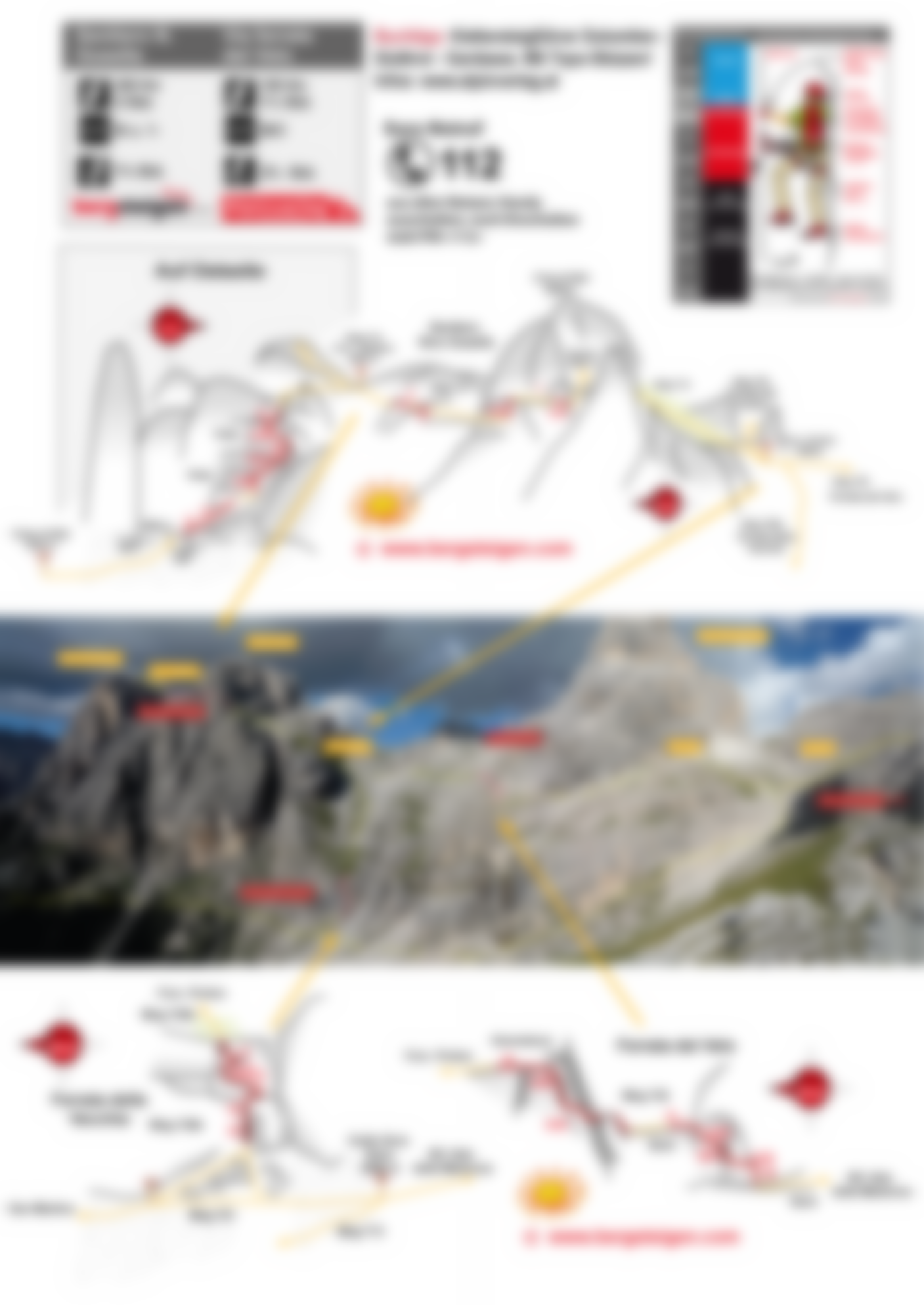 Für den Sent. N. Gusella ist 100%ige Trittsicherheit nötig! Man kann die Tour auch vom Val Canali (Rif. Cant del Gal, 1180 m) aus machen. Aufstieg auf dem Weg 709 zum Rif. Pradidali und weiter zum Passo di Ball. Nach dem Sent. N. Gusella und der Ferr. del Velo vom Rif. Velo über den Sentiero Camillo de Paoli bis Prati Fosne und wieder zum Ausgangspunkt (9 Std). Wer noch mehr Kondition hat, kann vom Rif. Velo auch über den Sent. Dino Buzzati oder Sent. Cacciatore (9 ½ Std., siehe dort!) ins Val Canali zurück (9 ½ Std.). Wer es etwas schwieriger mag, macht ab dem Rif. Pradidali statt dem Sentiero N. Gusella die Ferrata del Portòn (C, siehe dort!).