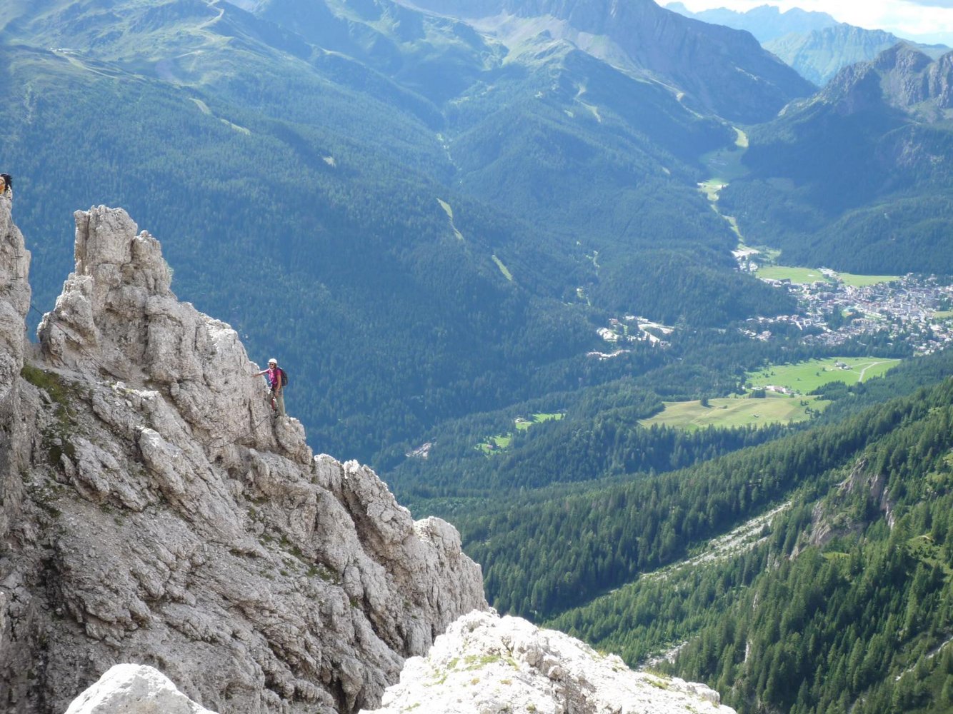 Die Gipfelzwillinge Sass Maor, 2814 m, und Cima della Madonna, 2572 m, gehören zwar nicht zu den höchsten Palagipfeln, lassen aber jedes Klettererherz höher schlagen – perfekter, senkrechter Plattenkalk direkt oberhalb des Rifugios Velo. Am Fuß dieses Traum-Gipfelpaars führt die Via ferrata del Velo zur gleichnamigen kleinen Hütte, in der die Bergsteiger noch unter sich sind. Der Zustieg erfolgt über den Sentiero Nico Gusella und bietet großartige Blicke auf die Felsnadeln. Fazit: Eine Traumrunde mit vielen Kombinationsmöglichkeiten.