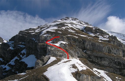 Eine kurze Leiter (A) gleich am Einstieg und zwei mit einem Drahtseil versicherte Passagen (A) stellen die Hauptschwierigkeiten dar. Danach geht man über Schotterfelder entlang der Markierung zum Gipfel.