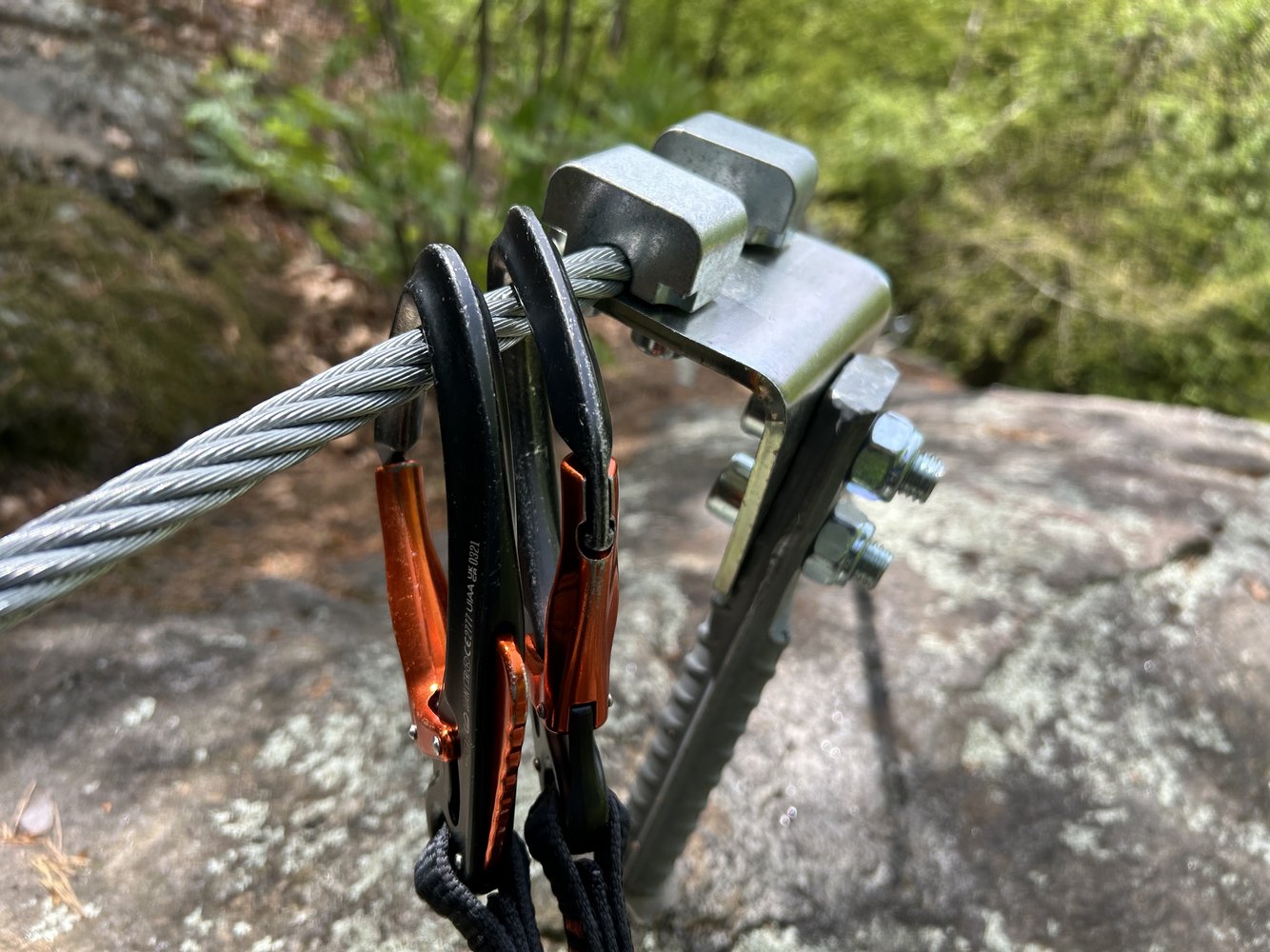 Sehr gut mit Drahtseil und Bügeln versichert.