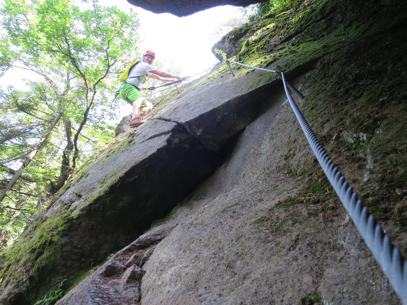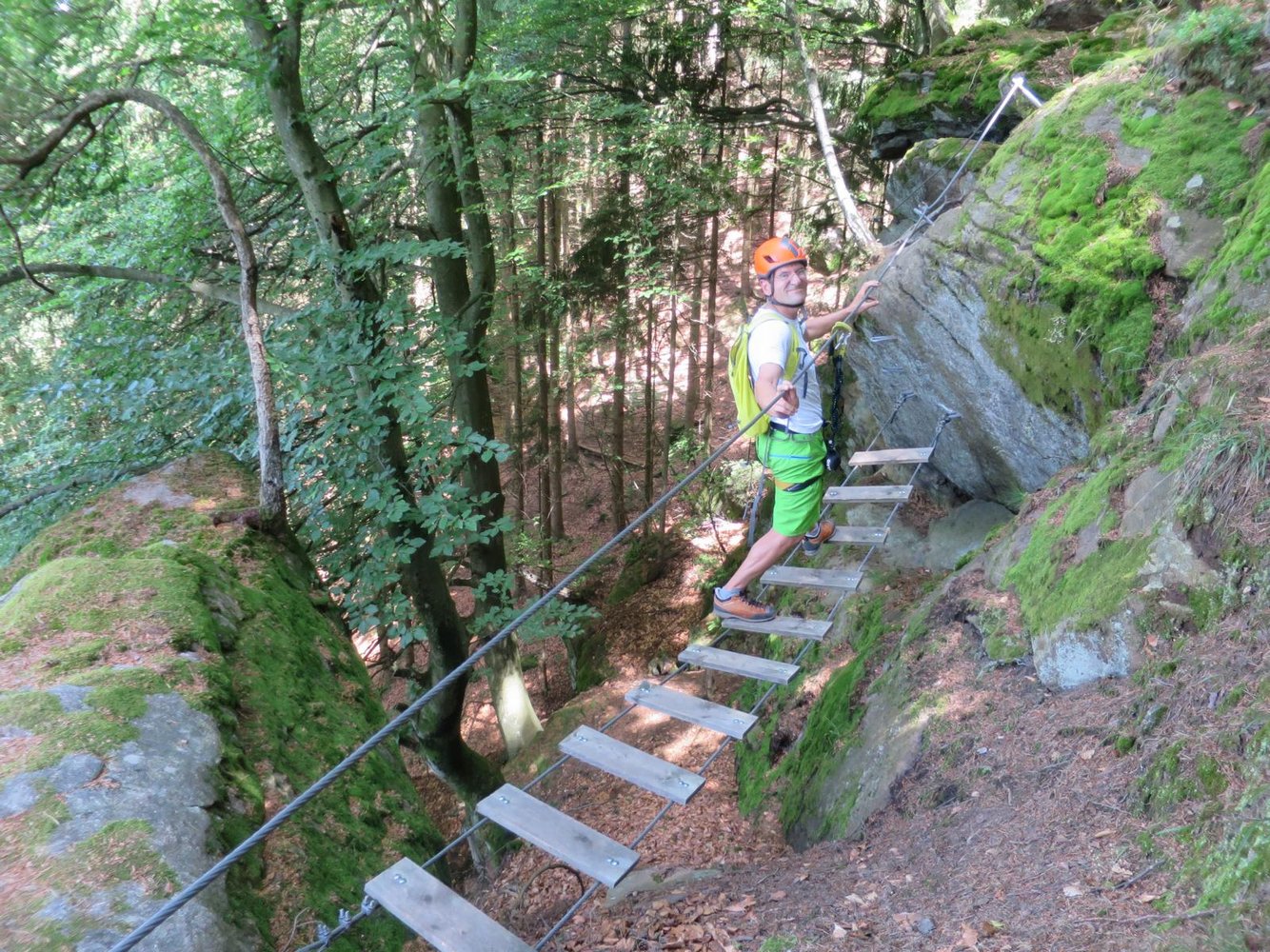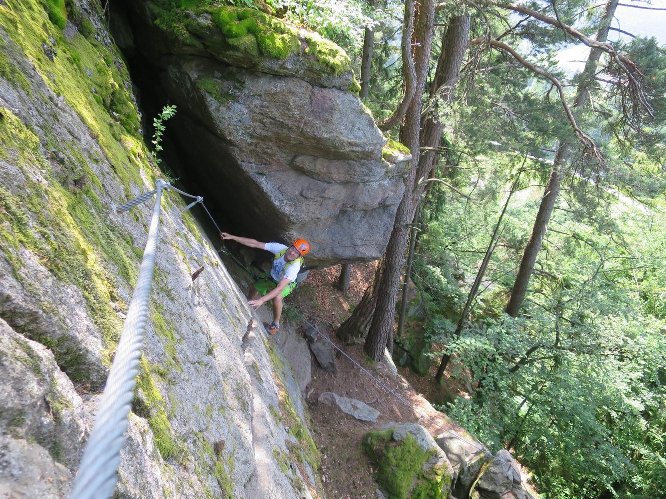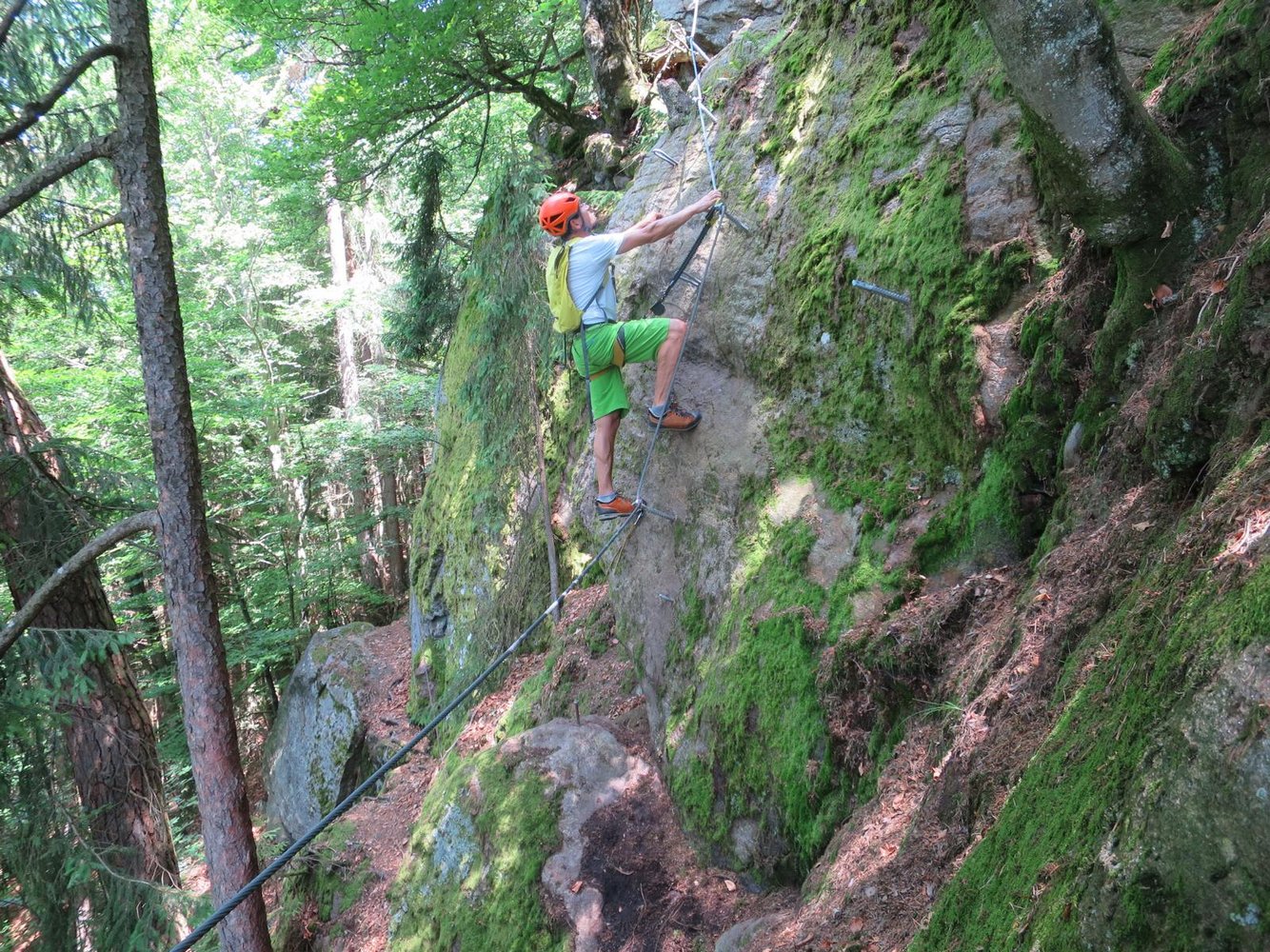 Bei Nässe ist die Begehung des fast komplett im Waldgebiet liegenden Klettersteiges nicht zu empfehlen. Im Sommer ist es auf der Klettersteigtour angenehm kühl.