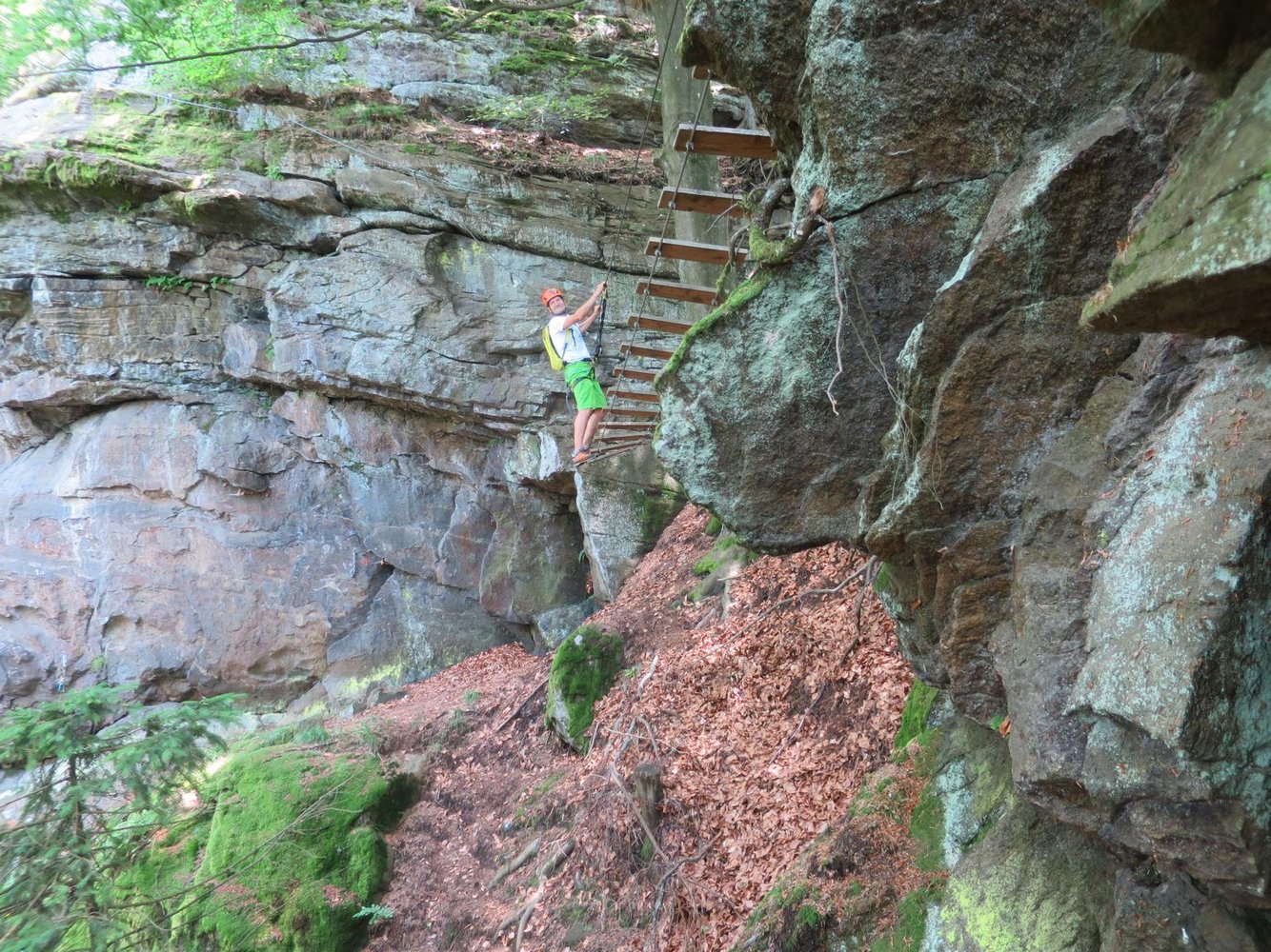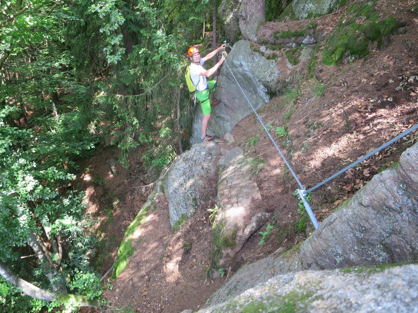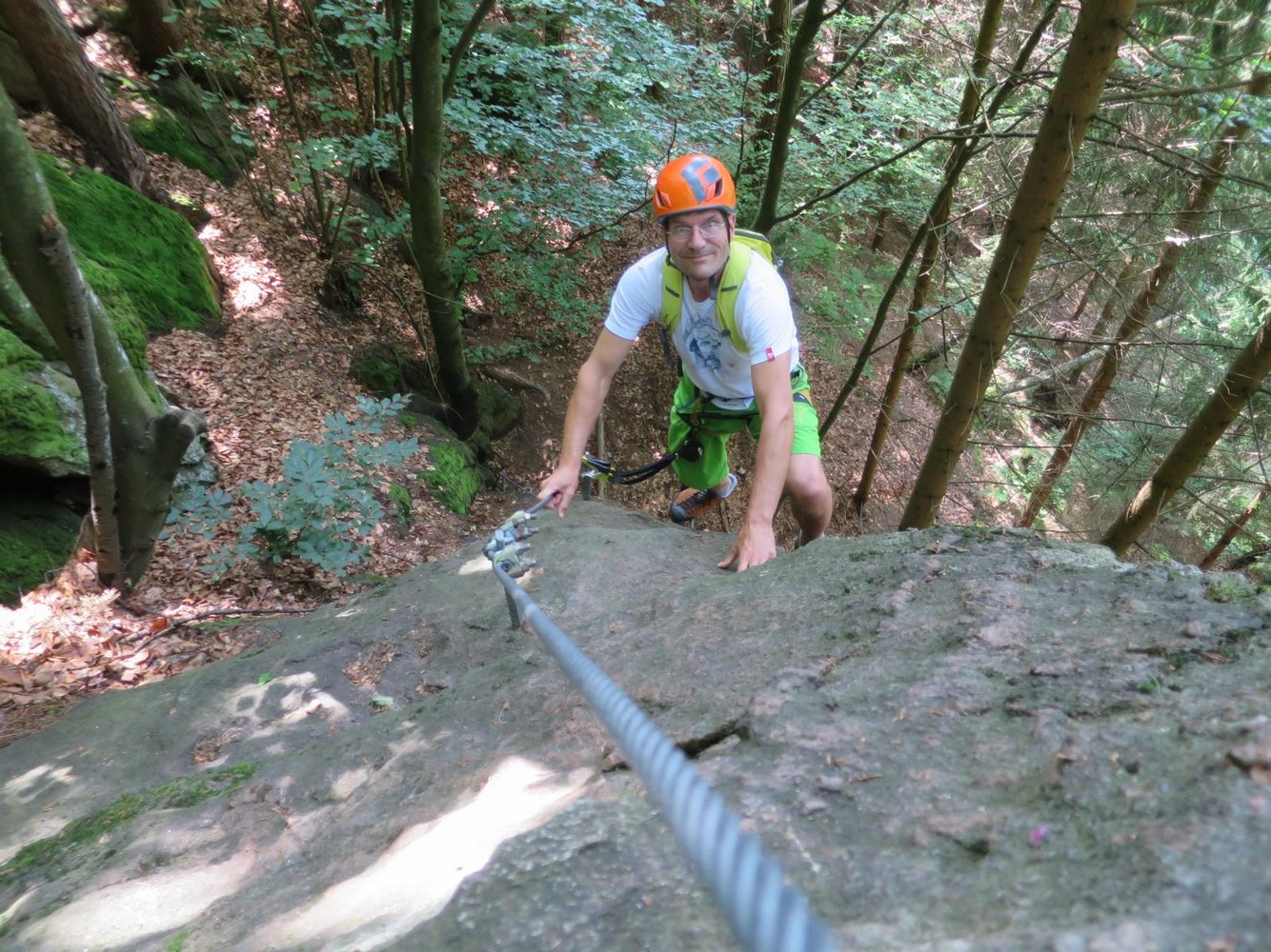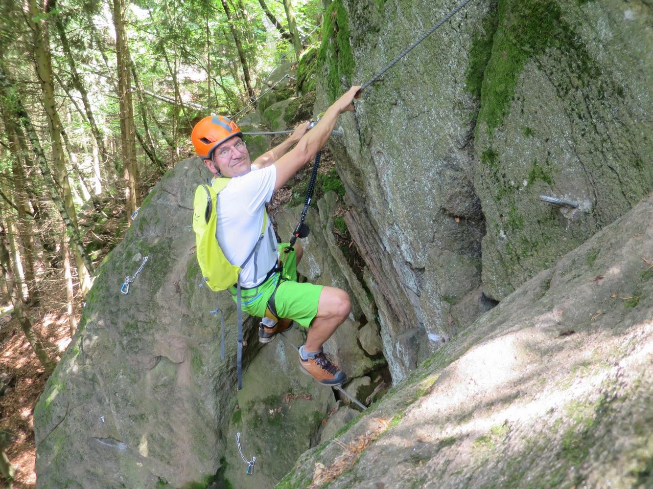 Bei Nässe ist die Begehung des fast komplett im Waldgebiet liegenden Klettersteiges nicht zu empfehlen. Im Sommer ist es auf der Klettersteigtour angenehm kühl.
