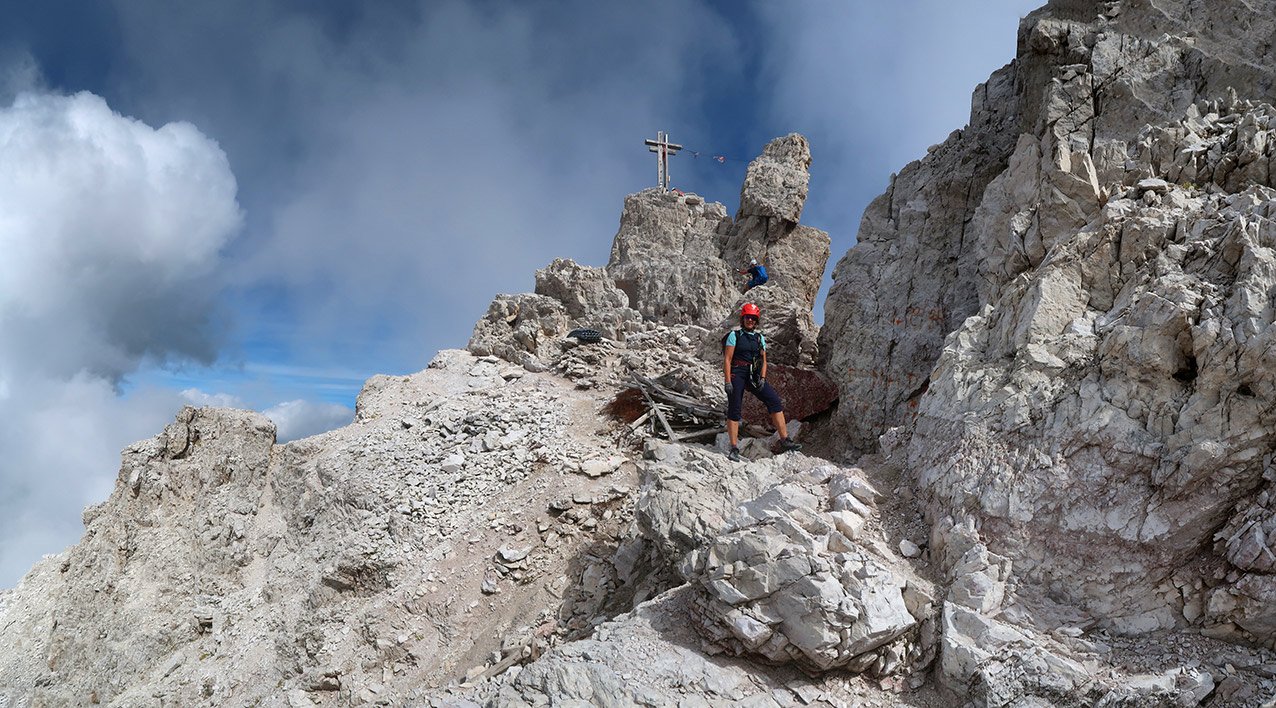 Die Sextener Rotwand Überschreitung ist die Kombination der Ferrata Zandonella und dem Rotwandsteig. Beginnend vom Kreuzbergpass steigt man entweder zuerst entlang der Ferrata Zandonella bis auf den Gipfel der Sextener Rotwand (2936 m) und von dort auf der Nordwestseite auf dem leichtern Rotwandsteig ab - man kann die Überschreitung aber auch andersherum machen und auf dem Südost-Klettersteig (Circolo Est) an der Südseite absteigen. Im Grunde ganz egal wie man es macht, es kommt eine recht lange Bergtour heraus - der Reiz ist nicht der Klettersteig an sich, sondern das Gesamterlebnis, bei dem man neben atemberaubender Landschaft auch viele Kriegsschauplätze des Ersten Weltkrieges sieht. Eine wirklich tolle Rundtour, bei der man final auf einem der bekanntesten Dolomitengipfel steht und am Ende des langen Tages auch in den Beinen spürt, wie viel Strecke man zurückgelegt hat.