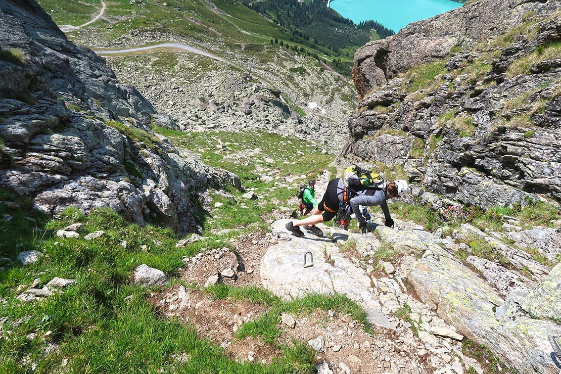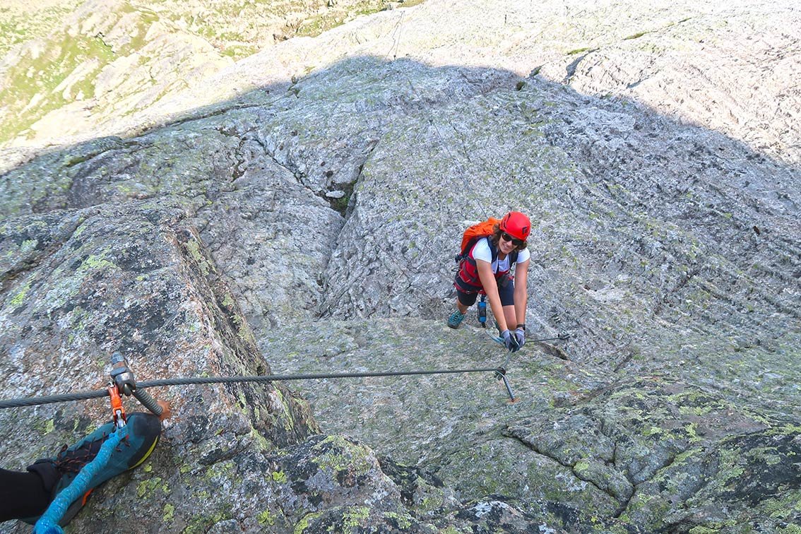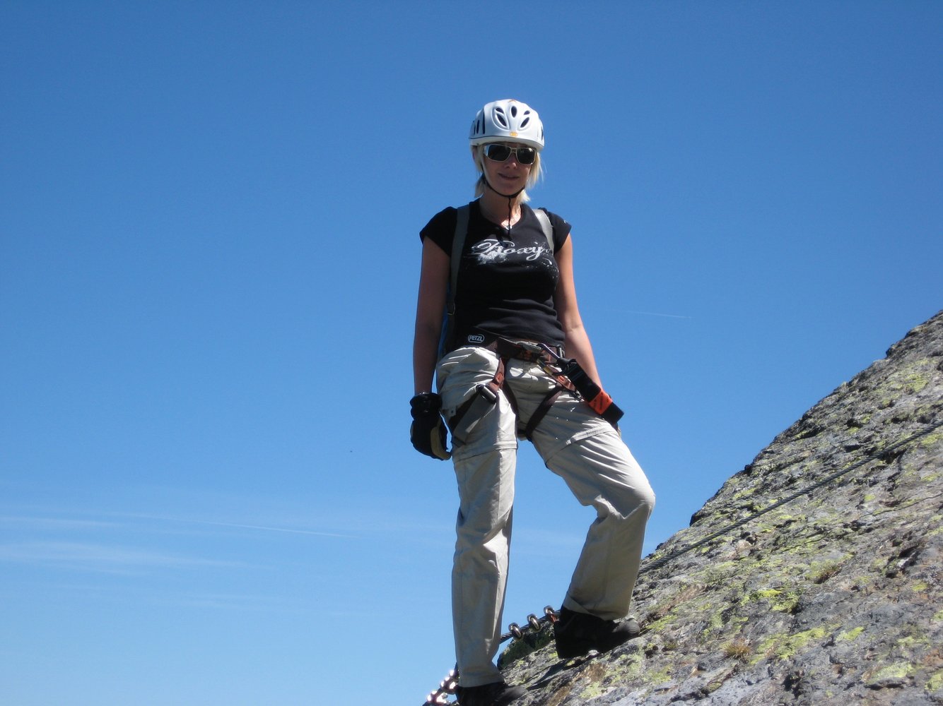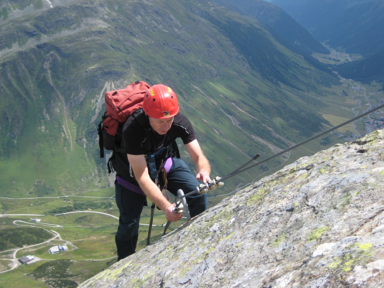Komplette Klettersteigausrüstung und Helm; für Schwächere evtl. ein kurzes Sicherungsseil.