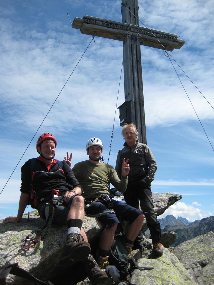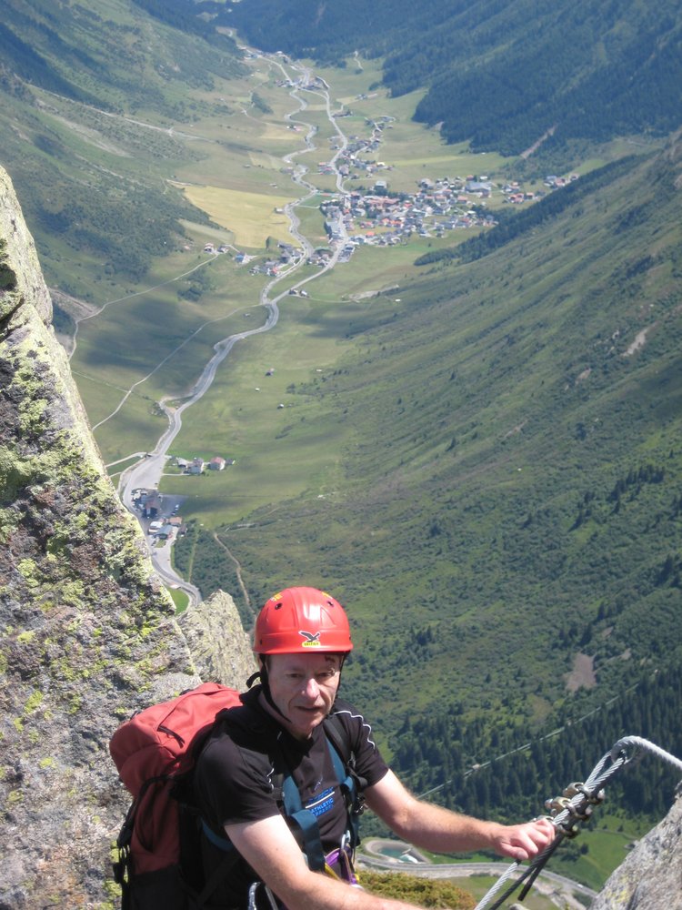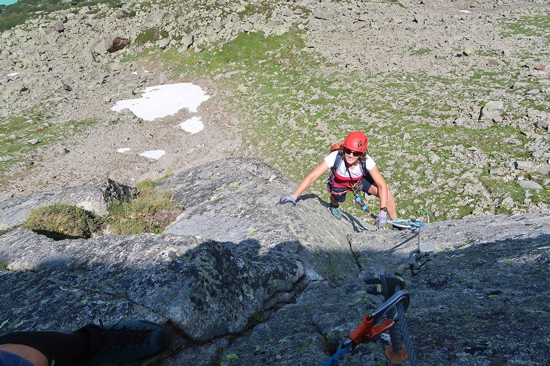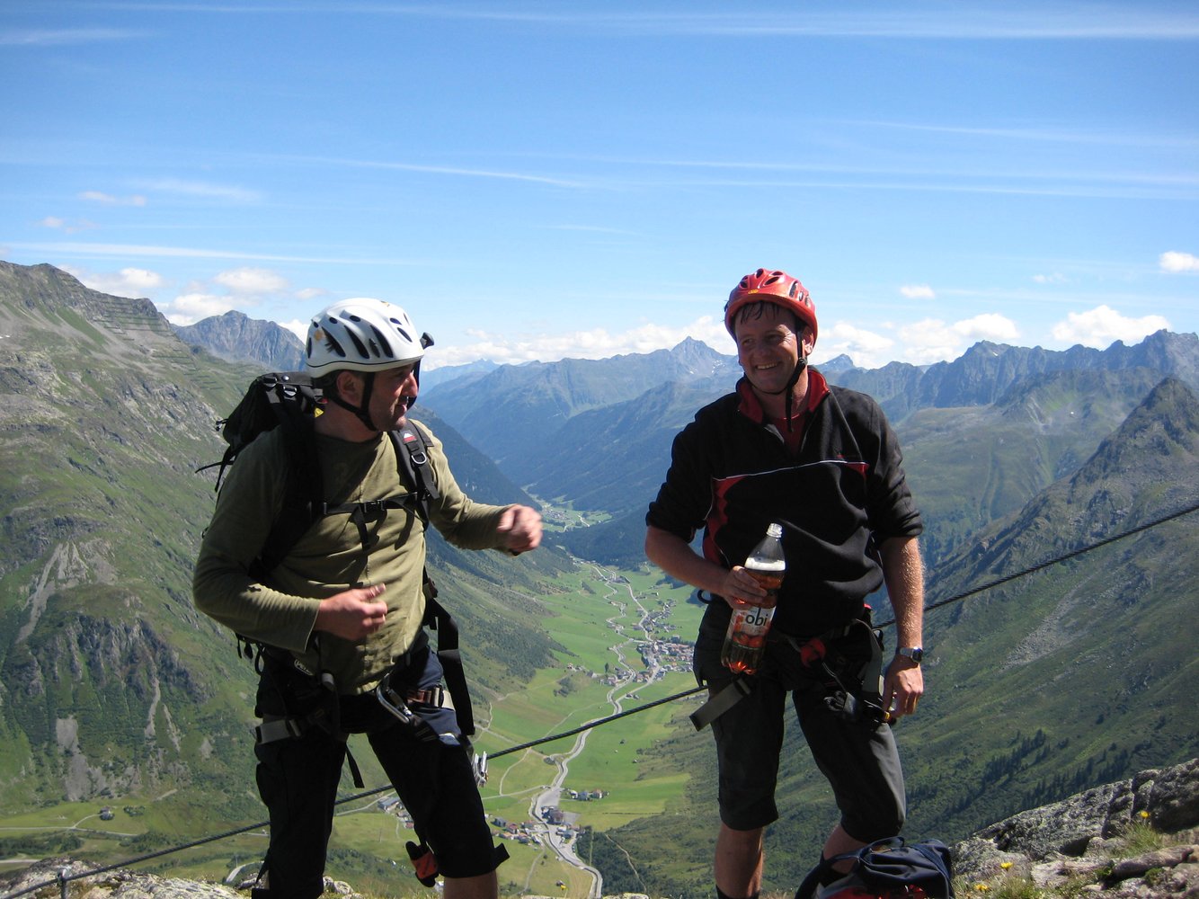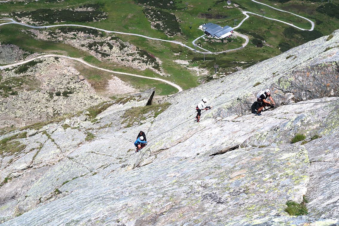 Komplette Klettersteigausrüstung und Helm; für Schwächere evtl. ein kurzes Sicherungsseil.