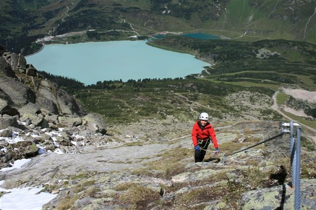 Der Klettersteig und vor allem der Abstieg ist bei Nässe sehr heikel.