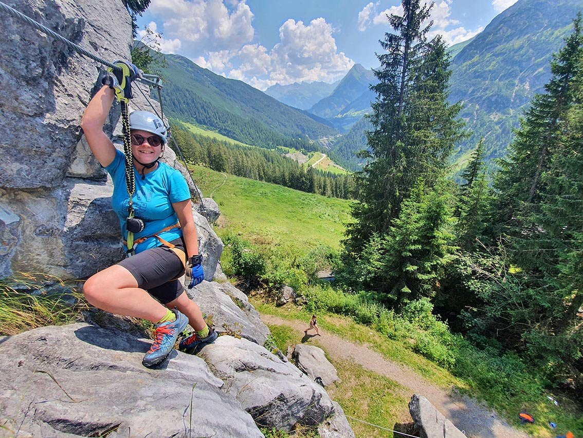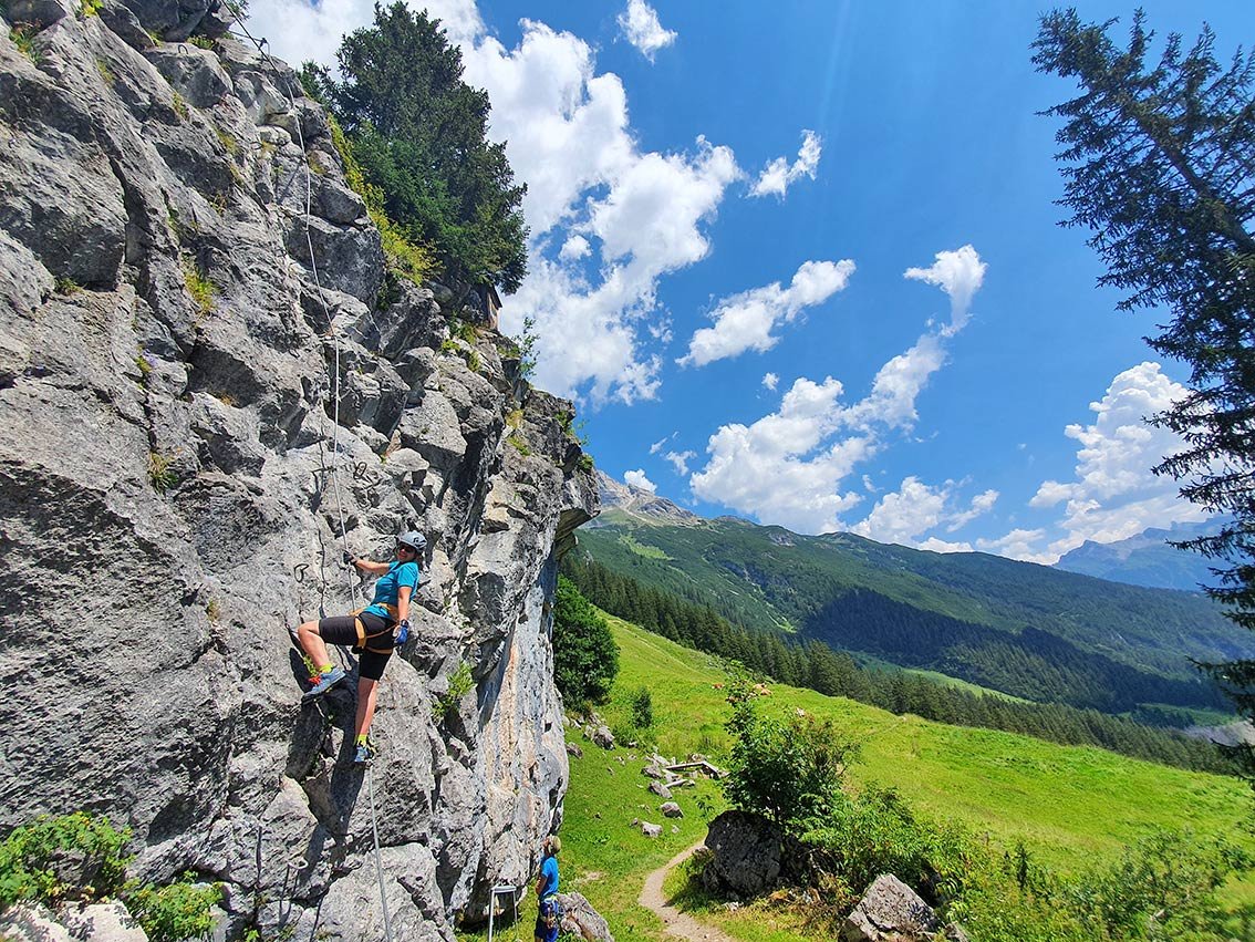 Dieser kurze, aber schöner Übungsklettersteig im Klettergarten Lechleiten bei Warth im Lechtal eignet sich gut als "Testgelände" für den Panorama Klettersteig am Karhorn.