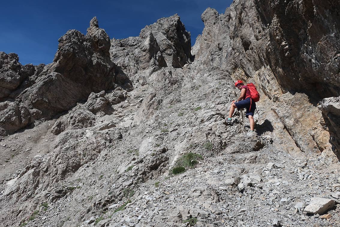 Der Spitzkofel Steig ist nicht durchgehend mit Stahlseilen versichert, sondern nur an den steilsten Stellen. Im leichteren Gelände ist Trittsicherheit erforderlich.