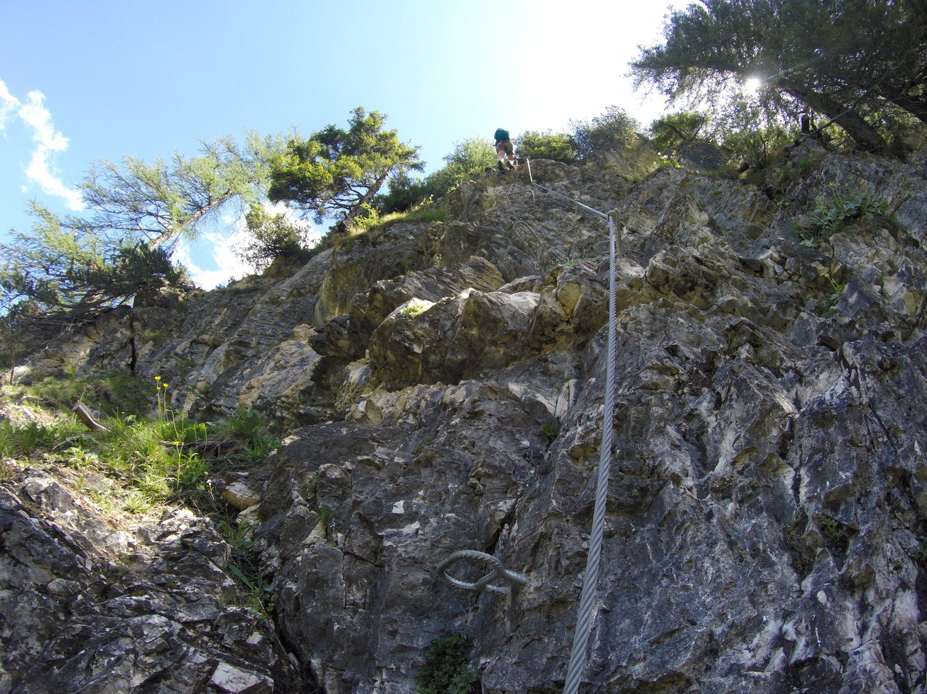 Der Hauptklettersteig ist C - es gibt kurze Einstiegsvarianten (für Übungszwecke und zum Kennenlernen der Schwierigkeit) von A bis E