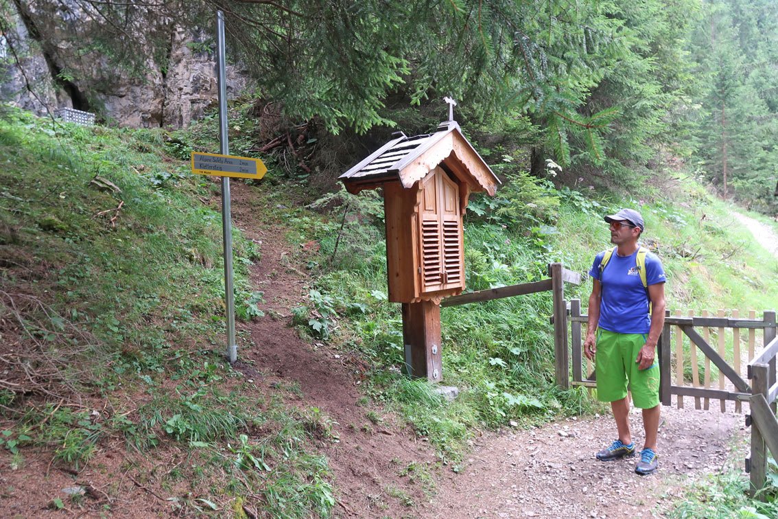 Vom Ausstieg bei der Kapelle (Jausenstation) nach rechts und auf dem Wanderweg zurück ins Tal - man kommt wieder am Einstieg vorbei. Weiter auf dem schon bekannten Zustiegsweg zum Parkplatz.