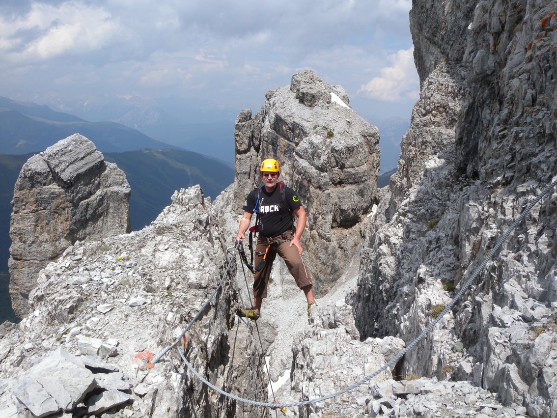 „Little Brenta in Tirol“ - anders könnte man diesen Klettersteig nicht beschreiben. Auf zahlreichen Bändern schlängelt man sich um die Türme auf dem Südwestgrat hinauf zum Gipfel. Vor allem das Band um den Turm im Mittelteil und die vielen Felsnadeln erinnern an die großen klassischen Klettersteige der Brenta. Kommt man von der Kemater Alm, ergibt sich eine schöne Wanderung mit anschließender Gipfelferrata. Man kann natürlich auch von der Schlicker Aalm zur Alpenklubscharte aufsteigen - viele werden den Steingrubenkogel auch noch im Anschluss an den Schlicker Klettersteig besteigen (liegt ja im Grunde auf dem Weg und ist nur ein kurzer Abstecher von der Scharte).