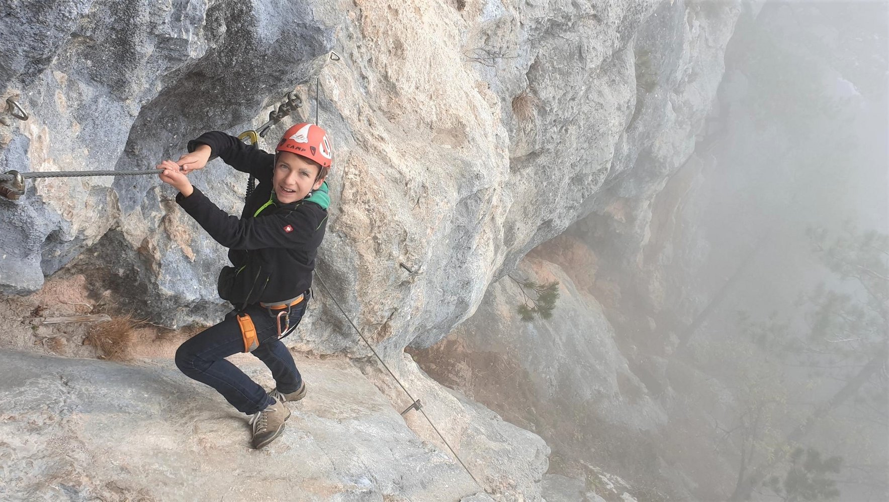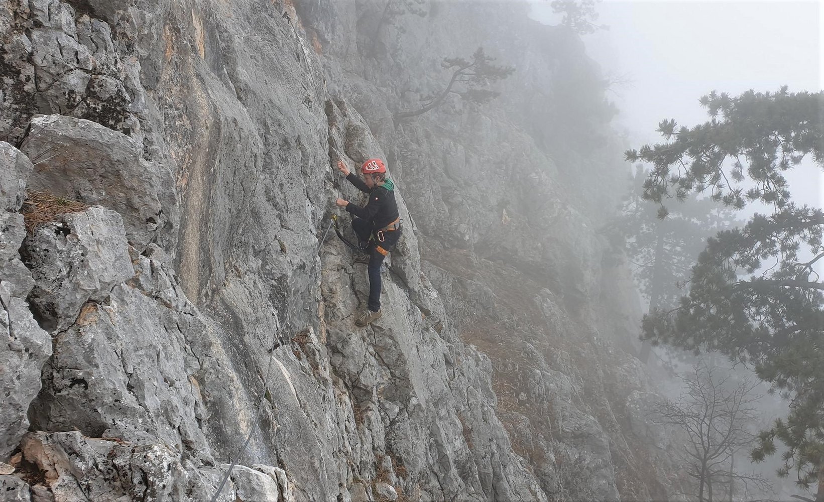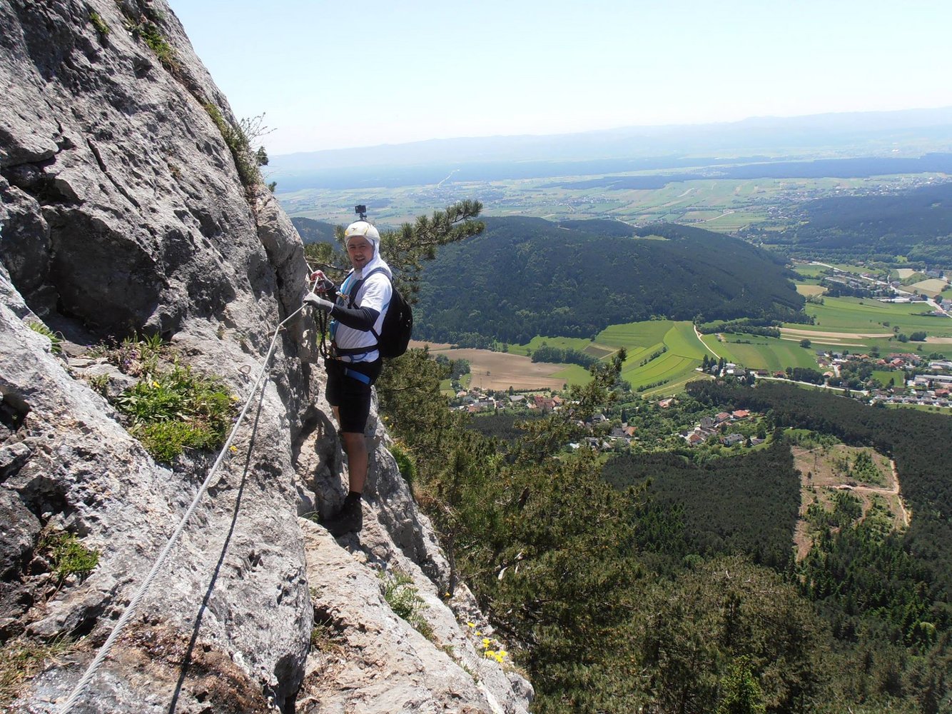 Rund 15 Jahe später hat die Steirerspur einen neuen Einstieg bekommen. Er zweigt bereits vor dem Hochplateau vom Springlessteig ab und trifft in genau in der Mitte des alten Steiges auf den Klettersteig. Rechts oder links? Wir empfehlen zuerst rechts und dann wieder zurück und links über den schwereren Teil hinauf zum Hubertushaus.