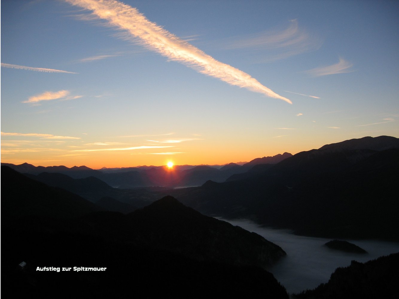 Schöner nicht allzu langer Klettersteig durch den niedrigsten Teil der Spitzmauer Nordwand. Der Steig führt über schöne Platten (siehe Foto) in den Sattel zwischen Weitgrubenkopf und Spitzmauer (siehe Übersicht). Von der Scharte kann man unschwierig über Geröll und Felsplatten auf den Gipfel der Spitzmauer gehen. (30 min ab Ausstieg). Der Steig ist durchgehend mit einem Stahlseil versichert und an den schwierigen Stellen gut mit Trittstiften versehen. (siehe Foto).