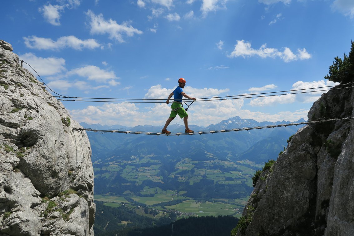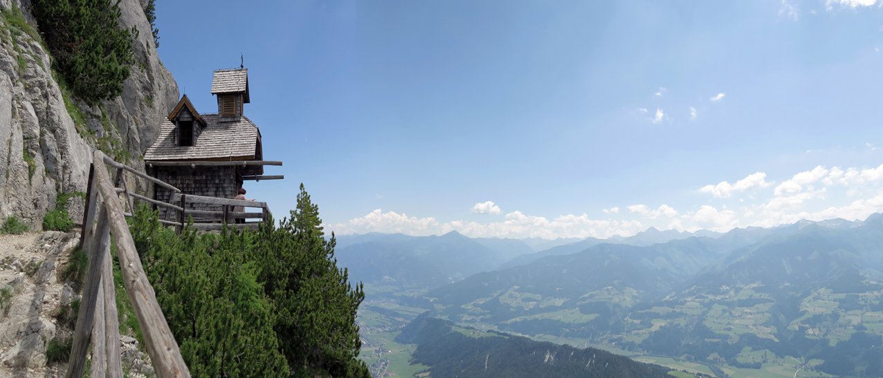 Schöner Klettersteigpark unterhalb des Gipfels vom Stoderzinken. Die Touren lassen sich ideal mit einer Gipfelbesteigung kombinieren, am Ende stehen fünf Varianten in verschiedener Schwierigkeit zur Auswahl. Landschaftlich eindrucksvoll beginnen die Steige beim Friedenskirchlein, das an der ausgesetzten Felswand steht. Wer noch mehr Abenteuer sucht, kombiniert seinen Ausflug mit einer Zipline-Fahrt (die größte Seilgleitfluganlage in den Alpen).