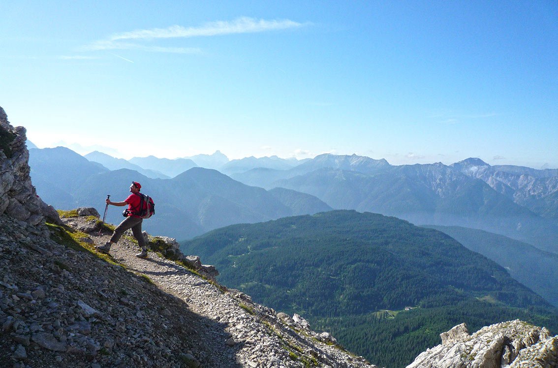 Meist fahren die Klettersteiggeher nach absolvierter Tour mit der Seilbahn ins Tal. Alternativ kann man natürlich auch über den Klettersteig wieder absteigen.