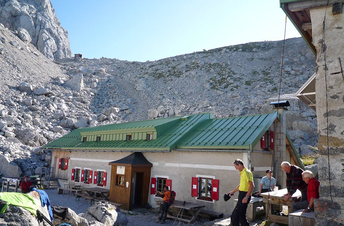 Von der Talstation auf markiertem Weg zur Wiener Neustädter-Hütte (oben kurze Stellen versichert, A). An der Hütte vorbei ins Schneekar und über Schutt zum Einstieg des Stopselzieher-Steiges (auf ca. 2300 m). Man kann auch vom Eibsee zur Wiener Neustädter-Hütte aufsteigen.