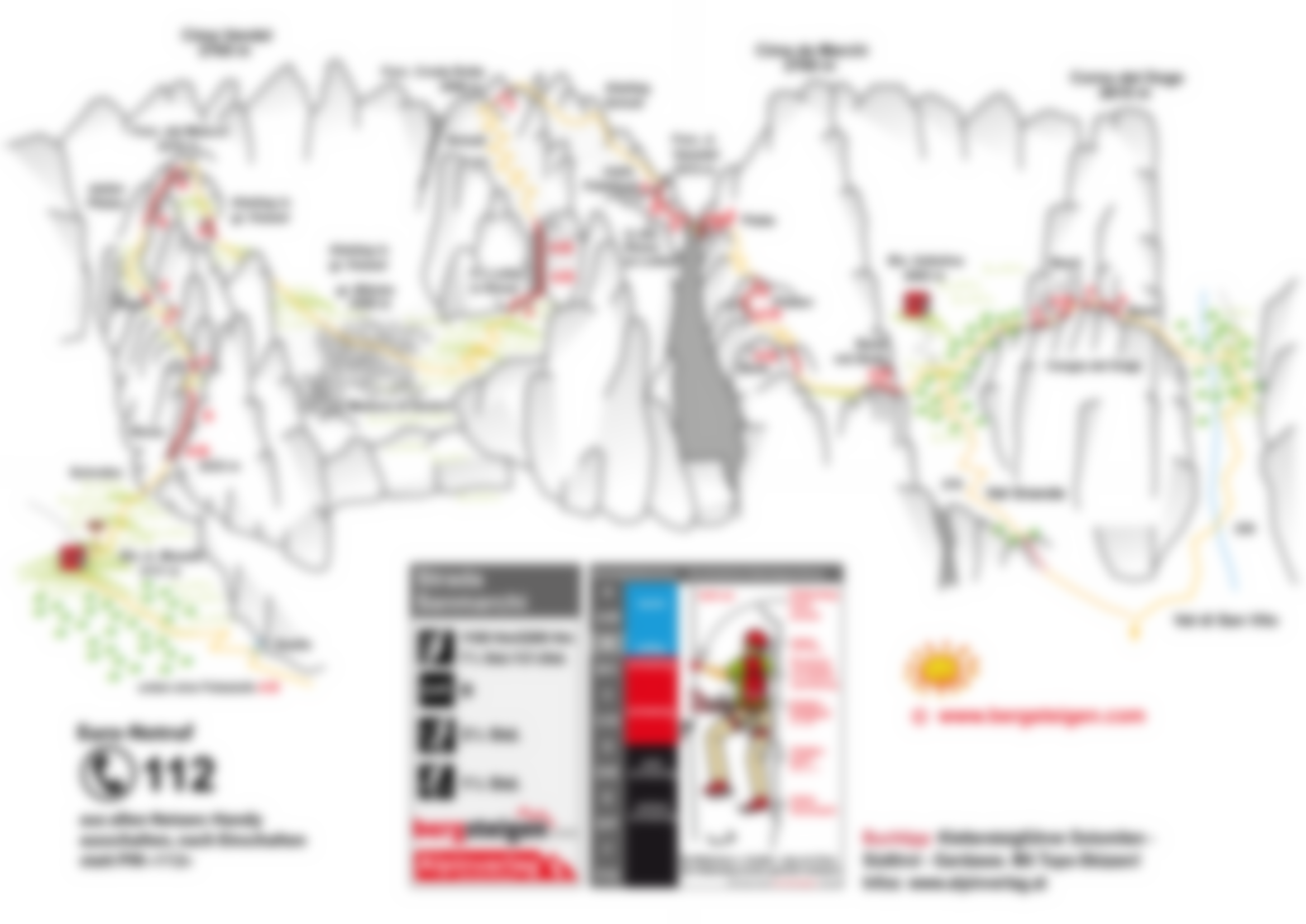 Als Tagestour nur für wirkliche Konditionstiger gedacht. Am besten verbringt man die erste Nacht im Biv. Musatti. Unterhalb vom Biwak die Quelle (siehe Topo), ab dem Biv. Musatti gibt es keine Quelle auf dem Weg! Im Bereich der Forc. Croda Rotta ist die Orientierung aufgrund der schwachen Markierungen schwierig, ansonsten gut markiert. Die Tour ist trotz der geringen technischen Schwierigkeiten eine ernste und sehr lange Unternehmung, die keinesfalls bei unsicherem Wetter gemacht werden sollte (viel steiles, bei Nässe oft glitschiges Gelände!).