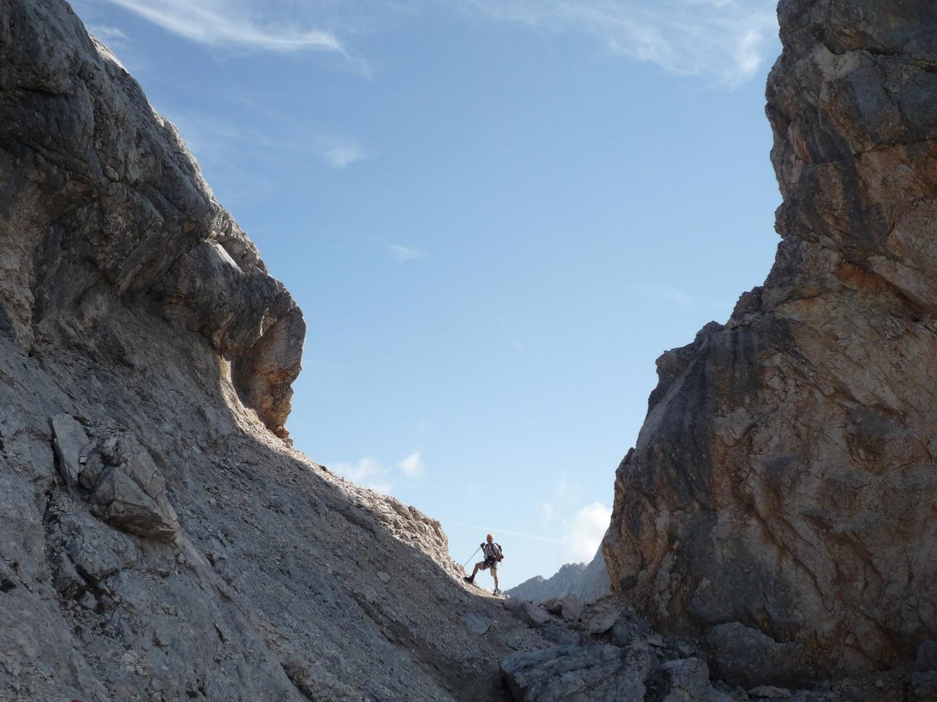 Der Zustieg ist extrem steil und lang, doch wird für die Anstrengung auch viel geboten; alpines Ambiente und grandiose Ausblicke – Dolomiten pur!