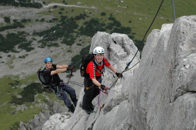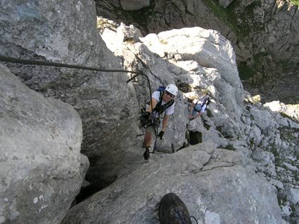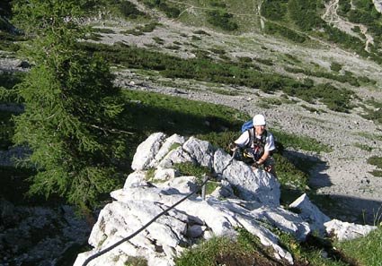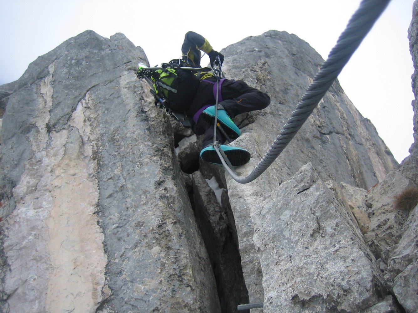 Der Steig ist sehr gut versichert, für den Abstieg ist aber Trittsicherheit erforderlich (felsdurchsetztes Schuttgelände).