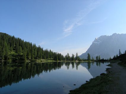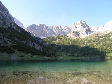 Variante Gondel: Bis zur Ehrwalder Alm auffahren und auf Wanderweg weiter bis zum Seebensee und wie oben zum Einstieg. Zeit: 1,5 Stunden von der Bergstation.