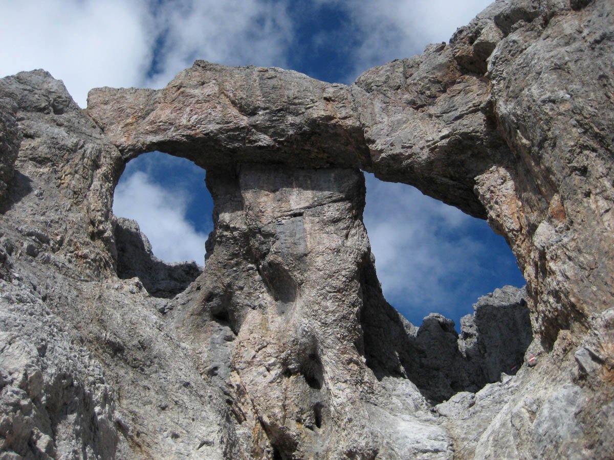 Den Versicherungen bis zu den Teufelslöchern folgen und durch das rechte Loch kurz zur Übergossenen Alm auf das Plateau absteigen.