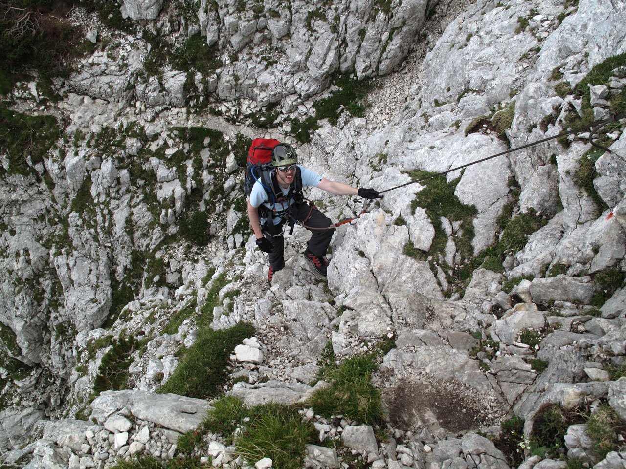 Komplette Klettersteigausrüstung und Helm, evtl. Sicherungsseil.