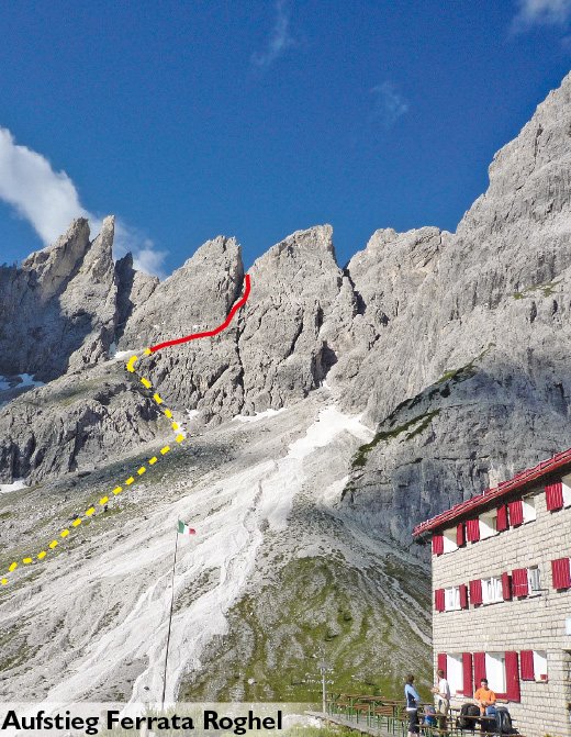 Großartige Klettersteigkombination in den Sextenern - Die Via ferrata Roghel verbindet gemeinsam mit der Via ferrata Cengia Gabriella, auch Gabriellaband genannt, das Rifugio Berti al Popera mit dem Rifugio Carducci. Am Folgetag kann man die Tour mit dem Alpinisteig und der Rotwand Überschreitung zu einer der schönsten Dolomitenrunden, dem „Giro del Gruppo Popera“ ausbauen. Die knackigsten Passagen warten gleich im Aufstiegsteil der Ferrata Roghel. Das Gabriella Band schlängelt sich in gewohnter Dolomitenmanier um den Monte Giralba herum und bietet neben vielen Gehpassagen mit interessanten Klettersteigstellen auch tolle Fotomotive!
