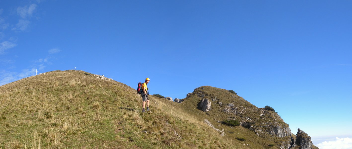 Die Kombination aus den beiden Klettersteigen Angelo Viali und Ezio Ferrari ergibt viel Klettersteigvergüngen bei kurzem Zustieg! Die abwechslungsreiche Ferrata Angelo Viali wurde teilweise neu und sehr ansprechend trassiert und ist im unteren Teil recht anspruchsvoll, während sie nach oben hin deutlich leichter wird. Vor allem die neuen Klammerpassagen im unteren Teil sind perfekt zu klettern. Nach der Ferrata Angelo Viali kann man auf der kurzen Ferrata Ezio Ferrari weiterklettern, diese am Wanderweg umgehen oder die Tour vorzeitig abbrechen. Dies sollte man nach Möglichkeit aber nicht tun, denn der Gipfel wartet mit toller Aussicht.