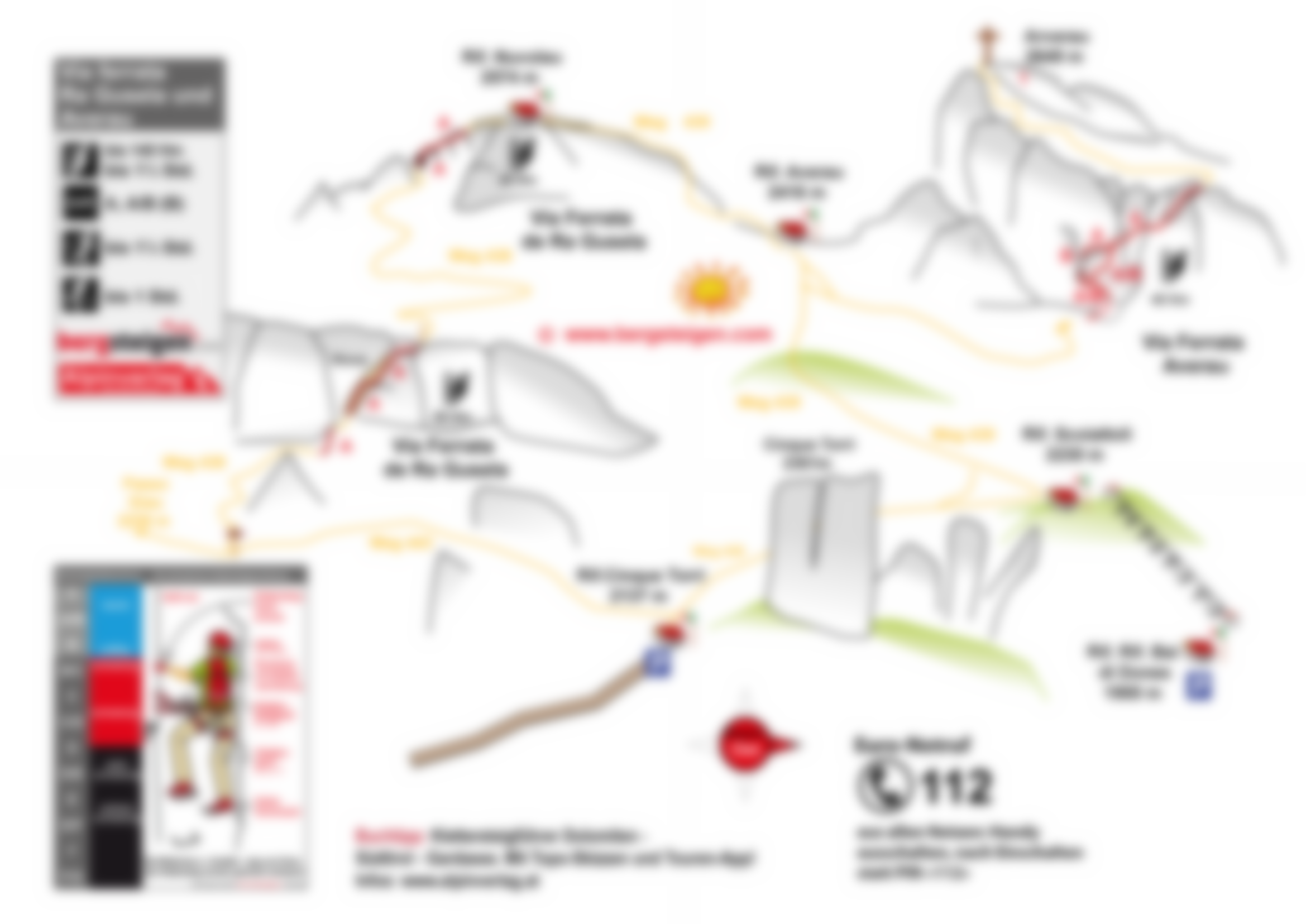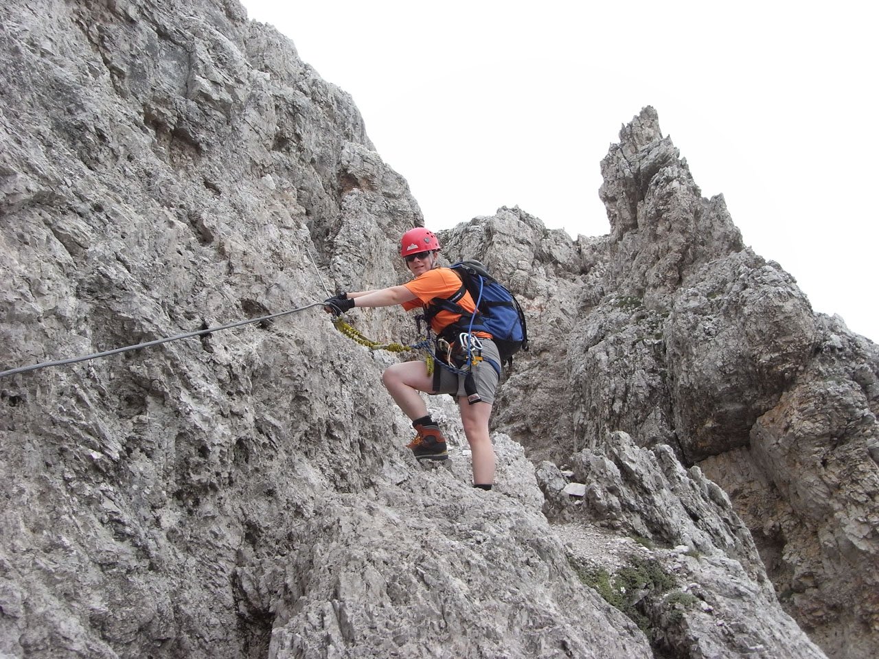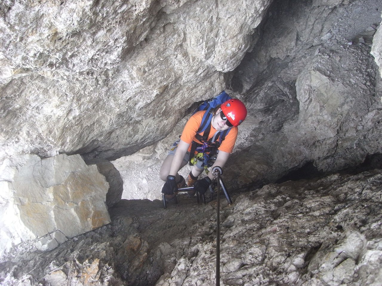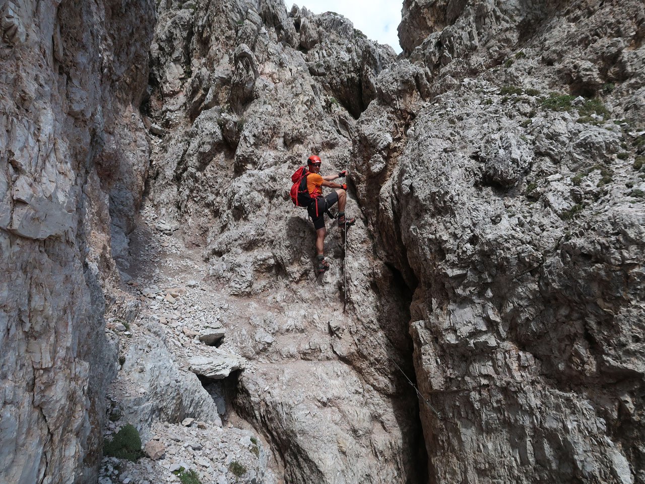 Über die leichte Variante des Klettersteiges (A/B) und weiter auf dem Aufstiegsweg.