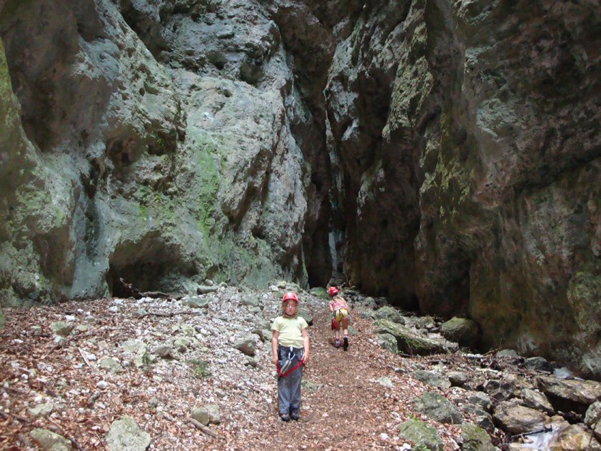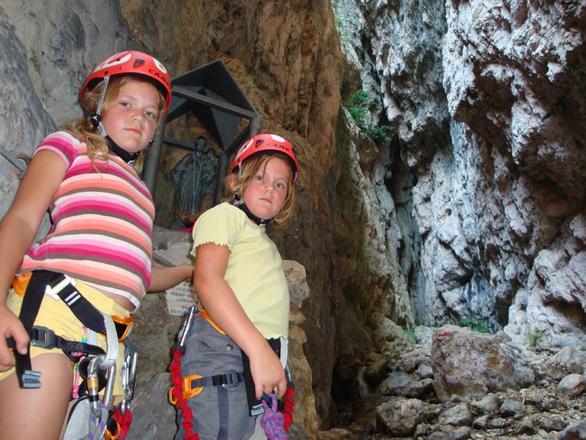 Der Steig ist auch gut mit Anfängern und Kindern zu machen. Im Hochsommer ist es nur auf der Gehpassage im unteren Teil oft heiß, in der Schlucht kühl. Den Steig auf keinen Fall nach Regenfällen oder bei Hochwasser gehen, da die Route oft direkt im Bachbett verläuft und der teilweise recht glatte Fels im feuchten Zustand unangenehm ist! Für kleinere Kinder ist die gesamte Tour trotz der Seilbahnfahrt recht lang, vor allem der Rückweg von der Talstation zum Parkplatz zieht sich etwas (evtl. zweiten PKW deponieren oder nach einer Mitfahrgelegenheit Ausschau halten). Beim Picknickplatz ist auch ein kleiner Teich (Laghetto dell'Ischia). Sonst ist die Tour für Kids, abgesehen von der langen Gehpassage nach dem Leitern-Einstieg, recht abwechslungsreich. In Mezzocorona kann man noch das in die Felsen gebaute Castello di San Gottardo oberhalb des Ortes besuchen. Der Zustieg ist nicht markiert, die Burg wird wegen Steinschlagprobleme nicht beworben – also ein kleines Abenteuer.