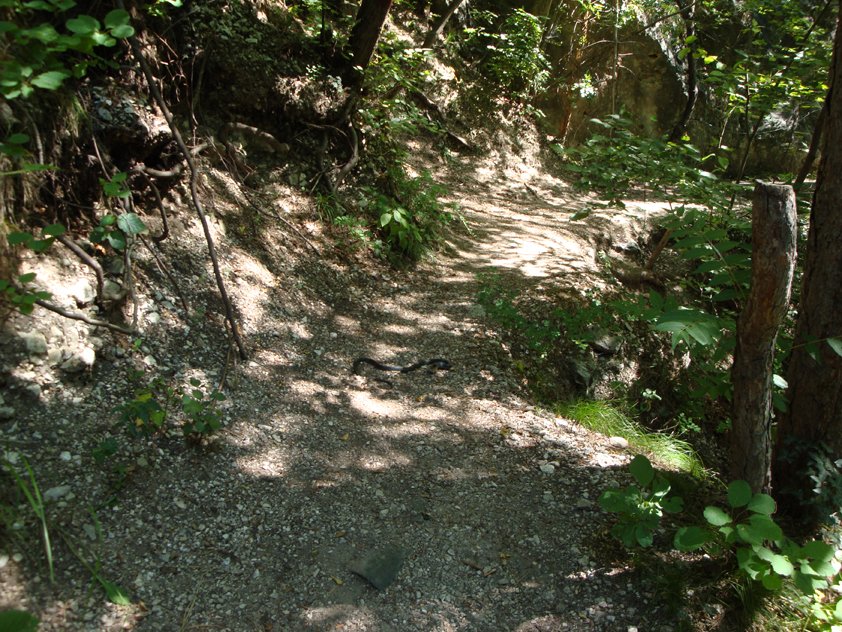 Vom Parkplatz (199 m, Hinweistafeln) auf dem Steig durch den Wald, nach ca. 5 Min. zweigt rechts der alte, „normale“ Weg ab. Man hält sich aber links und gelangt zum Bach. Dort, auf der anderen Bachseite, dem Steiglein zum Einstieg in der Schlucht folgen.