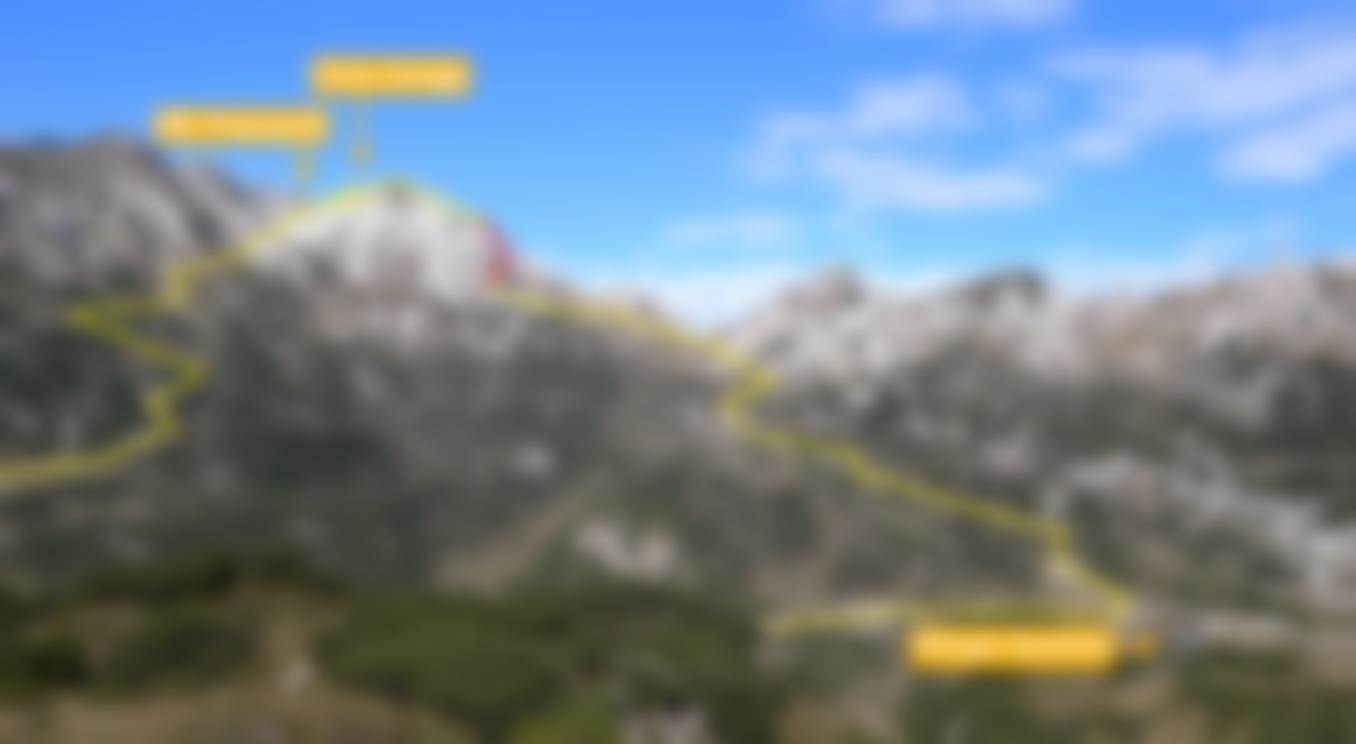 Vom Ausstieg in ca. 15 Minuten in einer Scharte. Von dort in ca. 5 Minuten zum Rifugio Fraccaroli bzw. auf den Gipfel der Cima Carega. Der Abstieg erfolgt in südlicher Richtung auf Weg 108B zurück zum Aufstiegsweg auf der Schotterstraße.