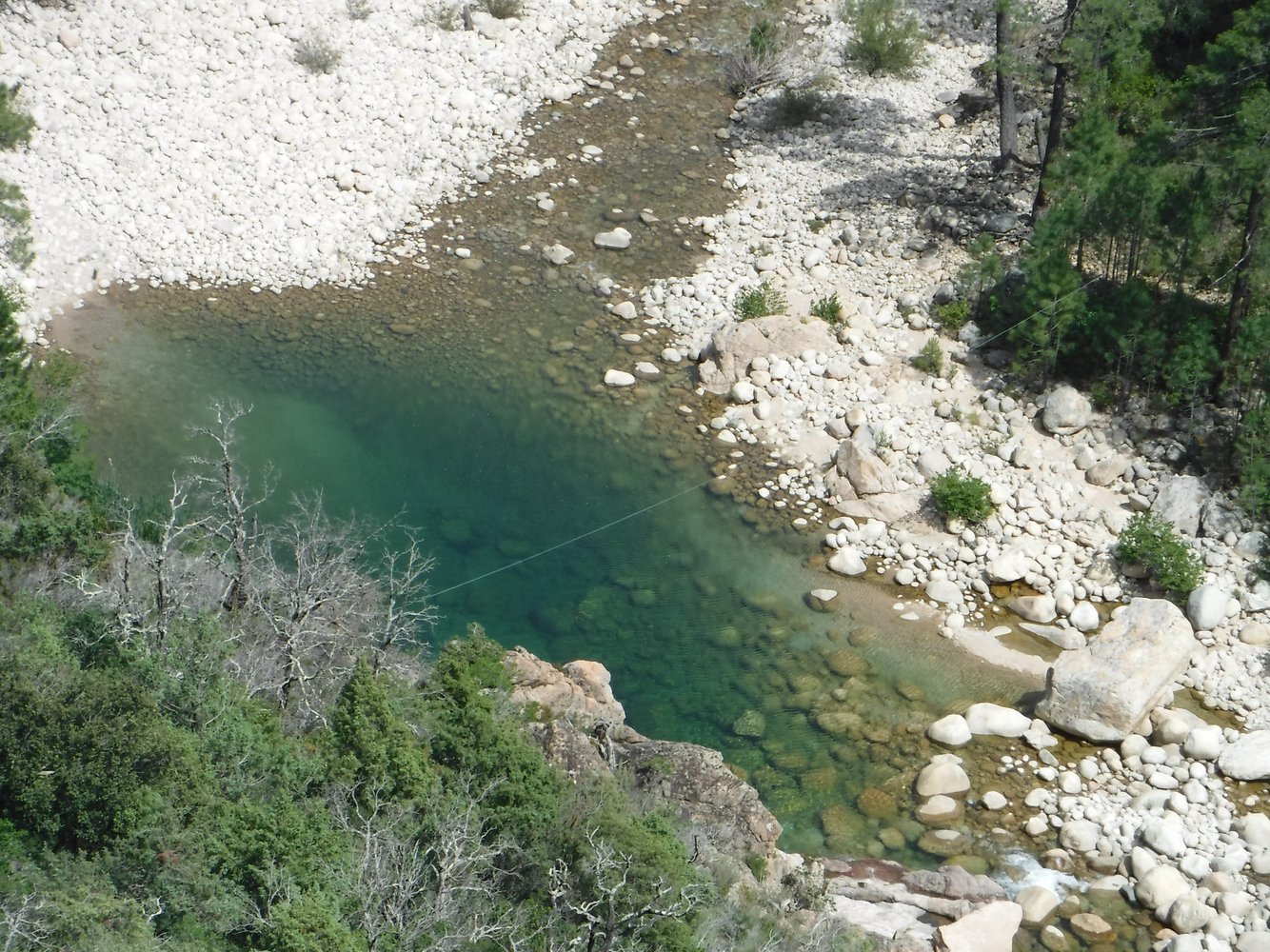 Auf der Schnellstraße T 10 entlang der Ostküste entweder von Norden (Aléria), oder Süden (Solenzara) bis zum Küstenort Solenzara. Dort biegt man westwärts ab und fährt entlang des Flusses Solenzara auf der D 268 Richtung Col de Larone (608 m), bzw. Col de Bavella (1218 m) im Südwesten. Der Fluss stellt auch die Département-Grenze dar zwischen Haute-Corse und Cors-de-Sud. Nach ca. 8 km kommt man nach einer Rechtskurve am kleinen Campingplatz „U Rosumarinu“ an rechter Straßenseite vorbei. Dahinter gibt es auf linker Straßenseite eine große geschotterte Parkbucht (90 m).