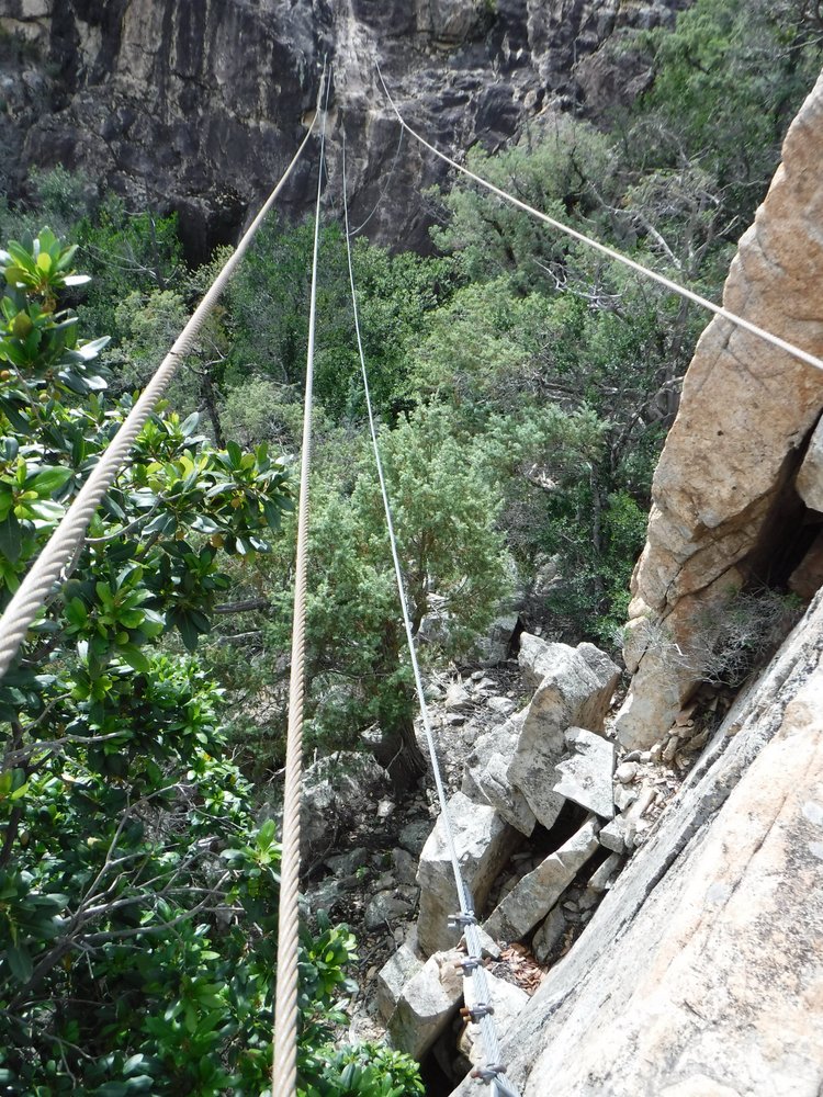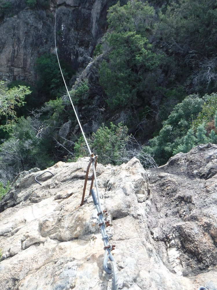 Am Ende des Klettersteig auf Höhe 290 kann man entweder links absteigen oder den extrem schwierigen Klettersteig Via ferrata de la Punta (D/E) anhängen.