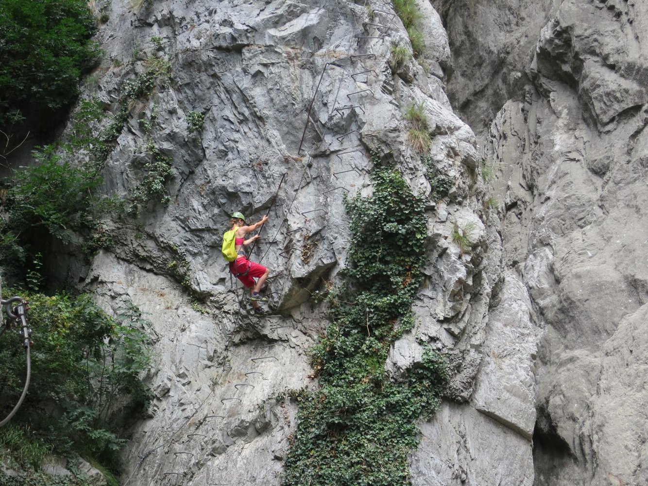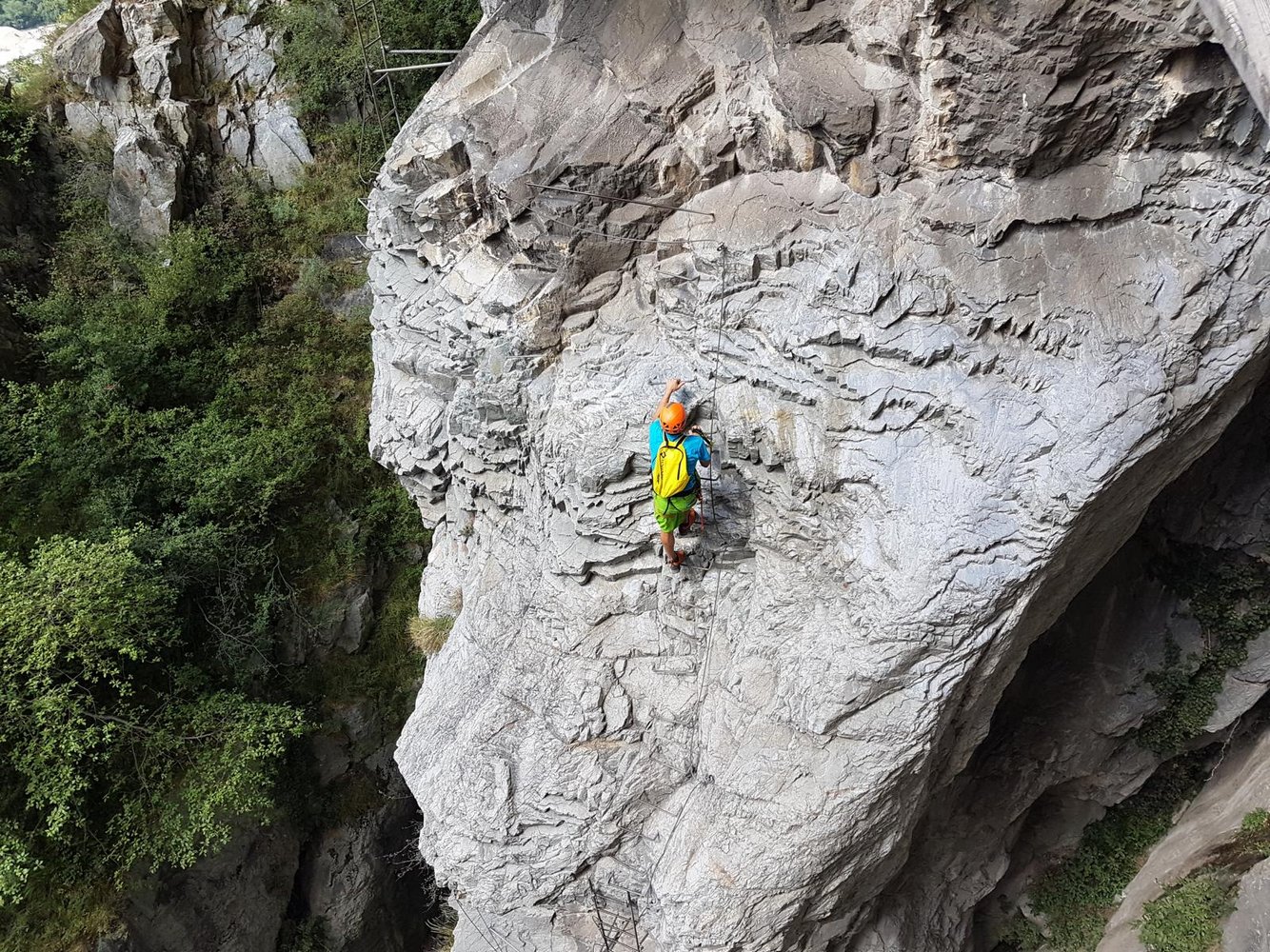 Ein sehr schöner Klettersteig mit einem athletischen Beginn, gefolgt von einer langen Nepalbrücke, die an einem Wasserfall vorbei führt. Eigentlich alles perfekt, wäre da nicht die Nähe zur Autobahn, die den Frieden etwas stört. Dennoch ein lohnendes Ferrata-Ziel, das sich gut mit dem schweren Klettersteig La Bastion verbinden lässt und das Dank der Straßen- und Talnähe im Vorbeifahren einfach mitgenommen werden kann.