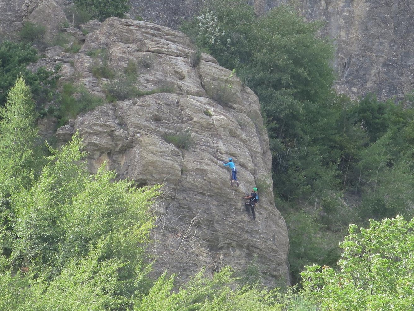 Mini-Ferrata auf den Hausberg von l'Argentière-La-Bessée. Die Crux liegt in der steilen, sogar leicht überhängenden Schlusswand.