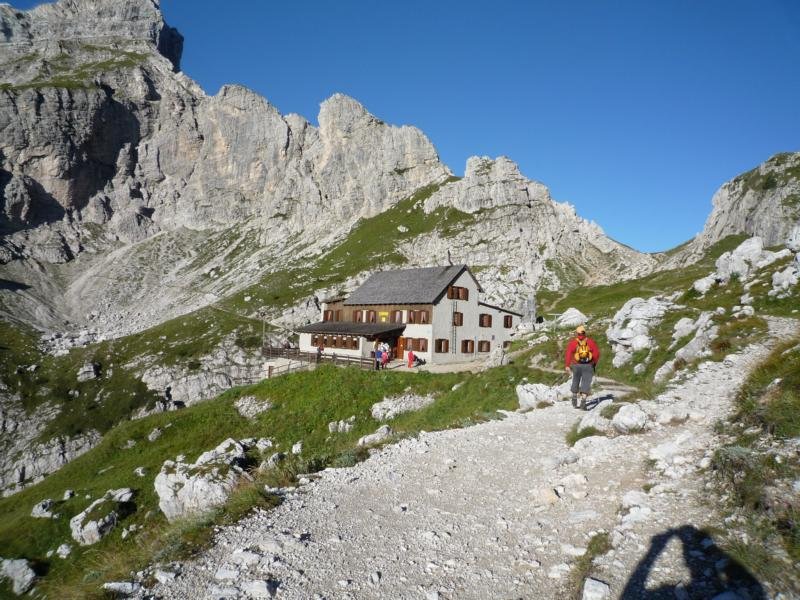 Tipp: Aufstieg Rifugio Coldai, am nächsten Tag die Ferrata Alleghesi und Abstieg über die Ferrata Tissi (mittelschwerer Klettersteig, aber im Abstieg naturgemäß leichter). Nach der Tissi kann man entweder über die Forc. delle Sasse (558), dann auf dem Weg 587 zurück nach Pecol, oder man steigt zum Rif. Vazzoler ab und macht nach einer Nächtigung die Umrundung auf dem Weg 560 als Ausklang.