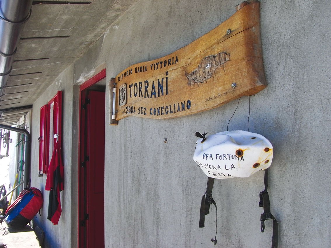 Aufgrund der Länge und der fehlenden Fluchtmöglichkeit nur bei ganz sicherem Wetter einsteigen. Die „Via Normale“ ist über weite Strecken versichert und kann somit als eigener Klettersteig (B) gelten. Bei Schneelage und Regen sind der Abstieg vom Gipfel zum Rif. Torrani und nicht gesicherten Stellen des Normalabstieges heikel!