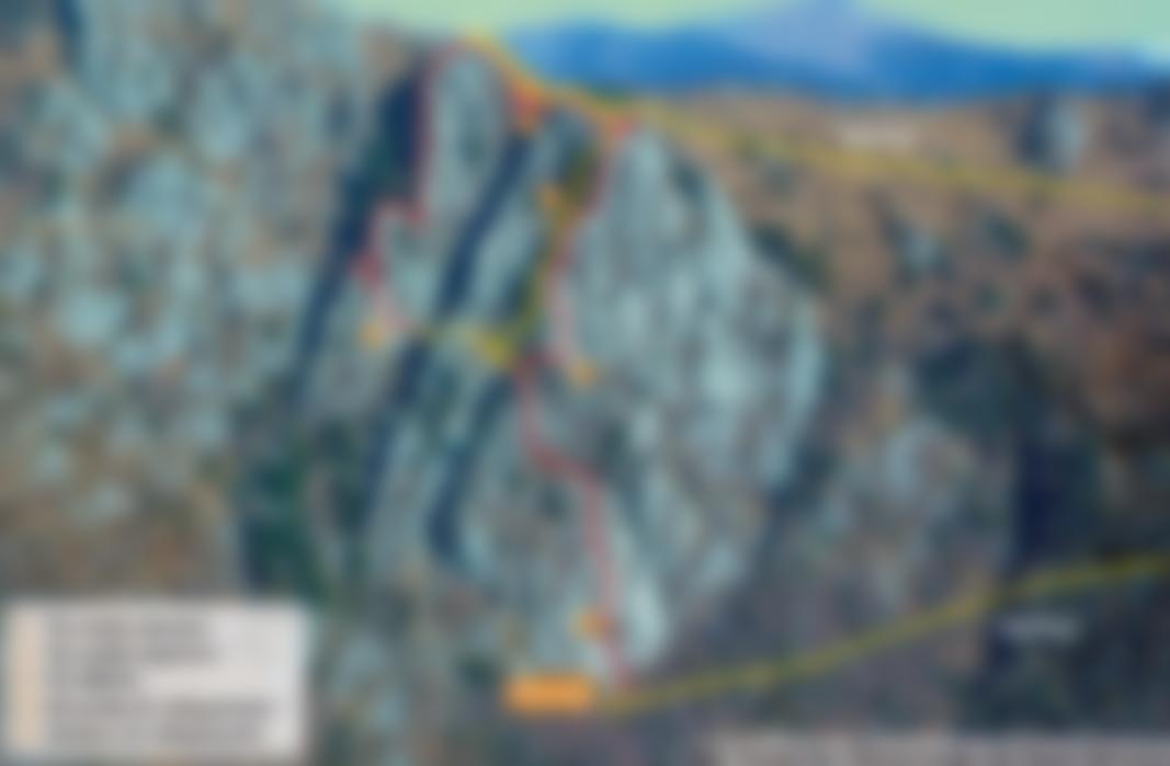 Via Difficile: Zweigt in der Mitte der Via Media von dieser ab und führt in hoher Schwierigkeit (C bis D) auf der nordwestlichen Gratrippe empor, wo die Variante direkt in die Via Media di Collegamento übergeht.