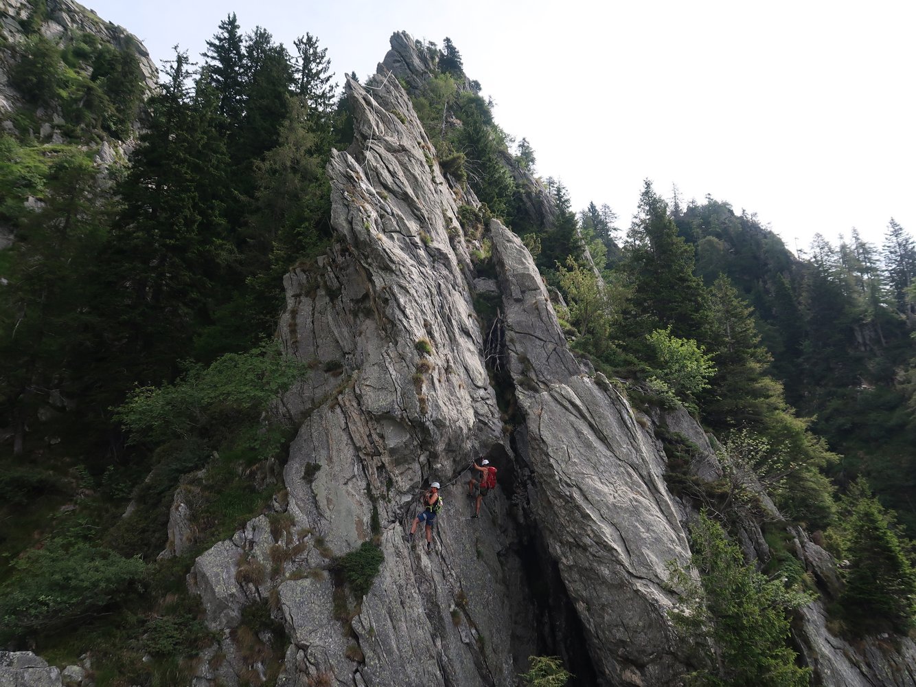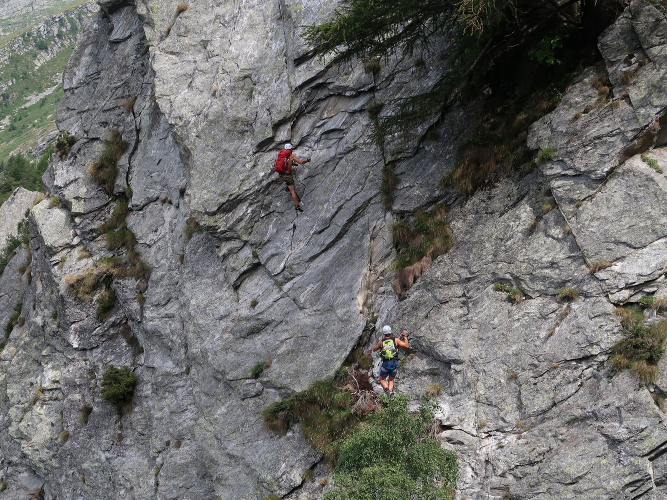Via Media: Führt in geringer bis mittlerer Schwierigkeit (B bis C) vom Einstieg zur Abzweigung der Via Difficile (Wegweiser). Weiter geht es in mittlerer Schwierigkeit (B/C bis C) auf der südöstlichen Gratrippe empor.