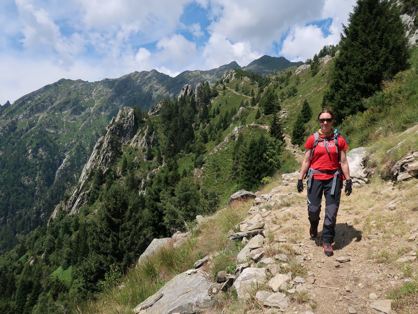 Vom Ausstieg auf dem markierten Wanderweg in südöstlicher Richtung – die steilen Grashänge der Cima della Pianca flankierend – zum Aufstiegsweg absteigen und zurück zur Bergstation.