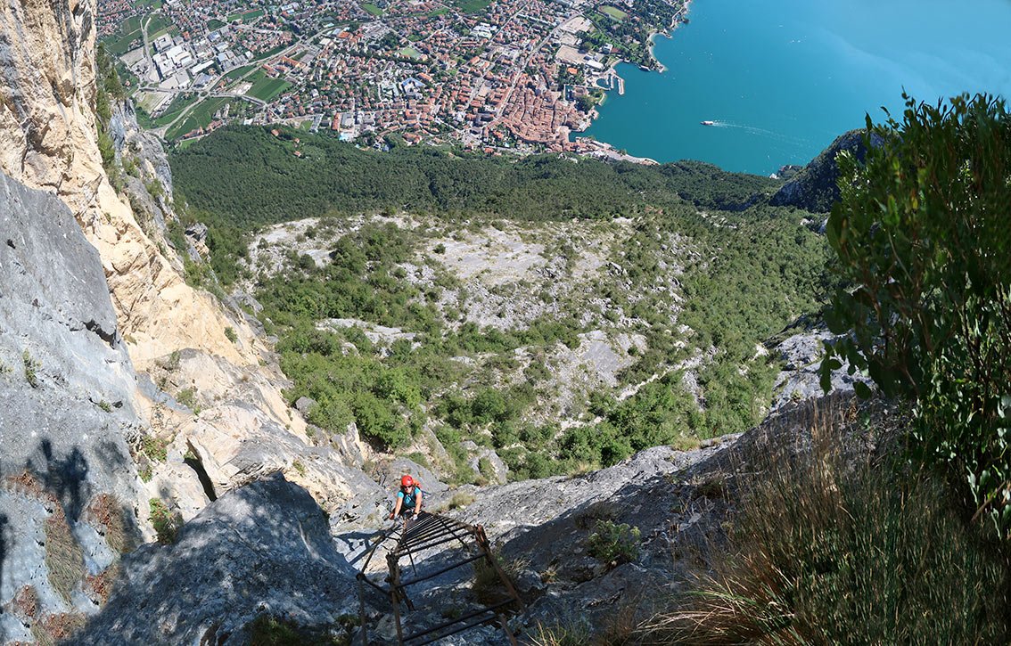 Eine der besten Gardasee-Ferratas und eine der ältesten Steiganlagen der Region liegt am Nordufer des Gardasees, direkt oberhalb des viel besuchten Touristenortes Riva del Garda. Für die Via dell' Amicizia sollte man ein gewisses Maß an Kondition mitbringen, denn man bewältigt bis zum Gipfel fast 650 Hm. Oben angekommen eröffnet sich den Klettersteiggehern eine atemberaubende Sicht auf den tiefblauen Gardasee, das Städtchen Riva und auf das nördlich gelegene Sarcatal. Ein weiteres Highlight dieses wunderschön gelegenen Klettersteiges sind die zwei steilen Leiterpassagen. Um diese Ferrata auch richtig genießen zu können, sollte man einen Tag mit nicht zu heißem Wetter wählen.