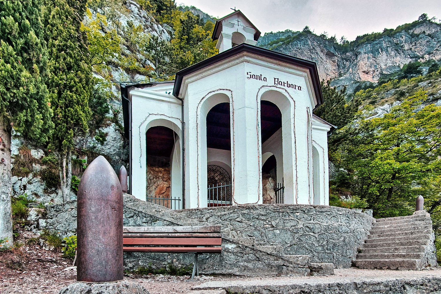 Bei einer großen Übersichtstafel an der Straße beginnt der anfangs gepflasterte Weg 404 zur Bastione (211 m). Von der weißen Festung auf dem Steig weiter bis zur Capanna (Hütte auf 560 m). Von der Hütte in Richtung Kapelle S. Barbara, vor einem Tunnelloch zweigt rechts der markierte Weg (404 B) zum Einstieg ab.
