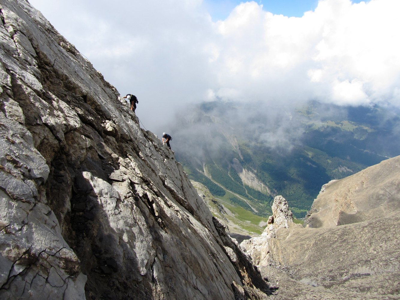 Auf dem weiß/rot/weiß markierten Sentier Prapio über Creux de Champ hinauf zum Refuge de Pierredar (3 Std., 1100 Hm). Dorthin gelangt man auch vom Col du Pillon über den Sentier Drudy (blau/weiß/blau) in 4½ Std., 800 Hm. Das ist zwar länger, doch kommt man bei Anreise mit dem PKW und Seilbahnbenützung wieder zum Ausgangspunkt zurück. Vom Refuge über ein Geröllfeld nach Osten hinauf zur ersten Felsstufe.