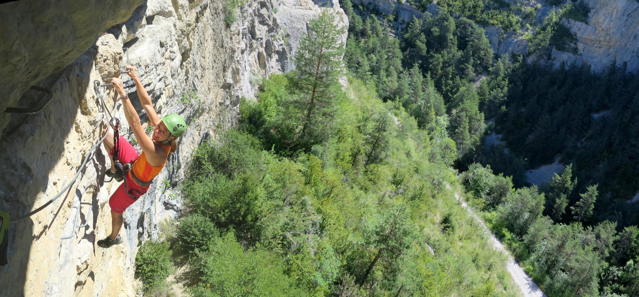 Das Tal der Gorges d'Angielles bietet neben viel Ruhe und einem malerischen kleinen Fluss in dem man im Sommer baden kann, zwei tolle Klettersteige. Die beiden Ferratas queren die niedrigen Felsen über dem Fluss auf Bändern und sind von französischer Bauweise. Zu Beginn wartet die Via Sportive mit 500 m anstrengender und auch teils sehr ausgesetzter Kletterei auf, um dann, wenn man noch möchte, von der Via Facile, die auf 800 m schönen Bändern folgt und erst am Ende ganz kurz etwas schwieriger wird, abgelöst zu werden.