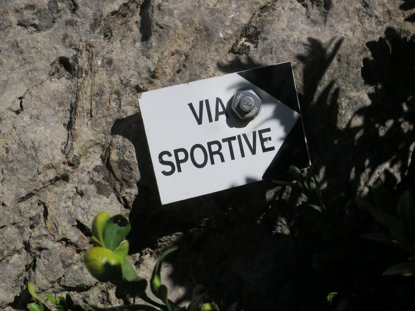 Vom Ausstieg auf einem Weg unter der Wand zurück zum Parkplatz. Wer die Via Facile anhängen möchte, zweigt bei einer Möglichkeit zur Straße hinunter ab und folgt dieser 5 Min. taleinwärts.