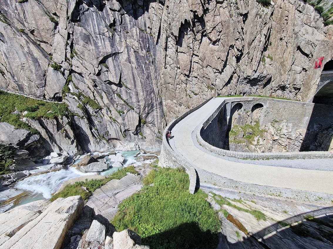 Vom Parkplatz in Andermatt auf dem Wanderweg zur Teufelsbrücke und von dort vorbei an einem kleinen Buffet zum Suworow-Denkmal absteigen. Gleich hinter dem Monument beginnen die Versicherungen.